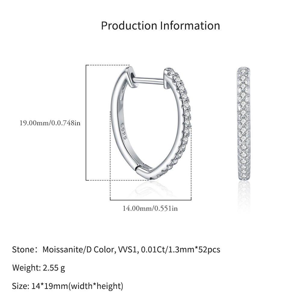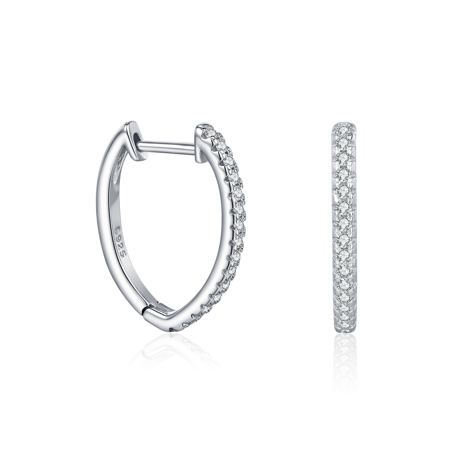 925 Sterling Silver Single Row Moissanite Huggie Hoop Earrings 110100066