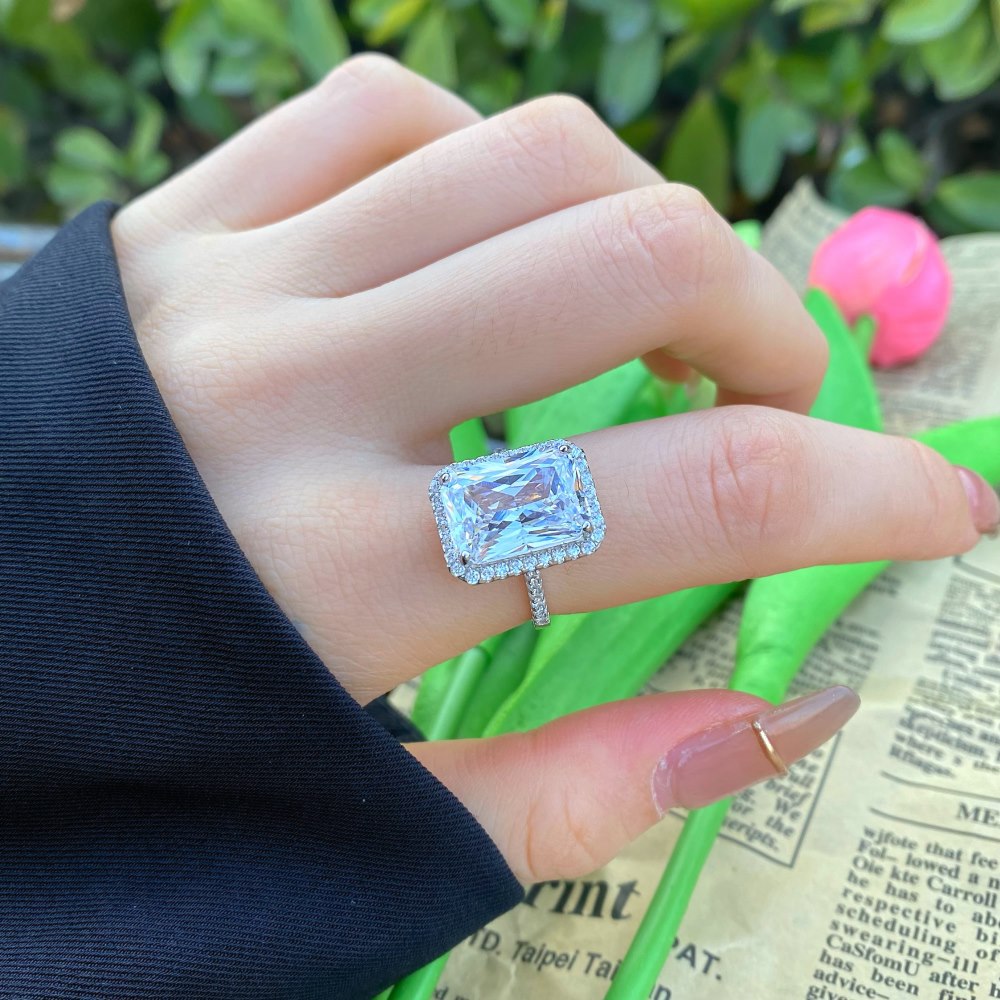 Product: Wholesale 925 Sterling Silver 8A Curshed Ice Radiant Cut Zirconia Solitaire Ring 70200107.