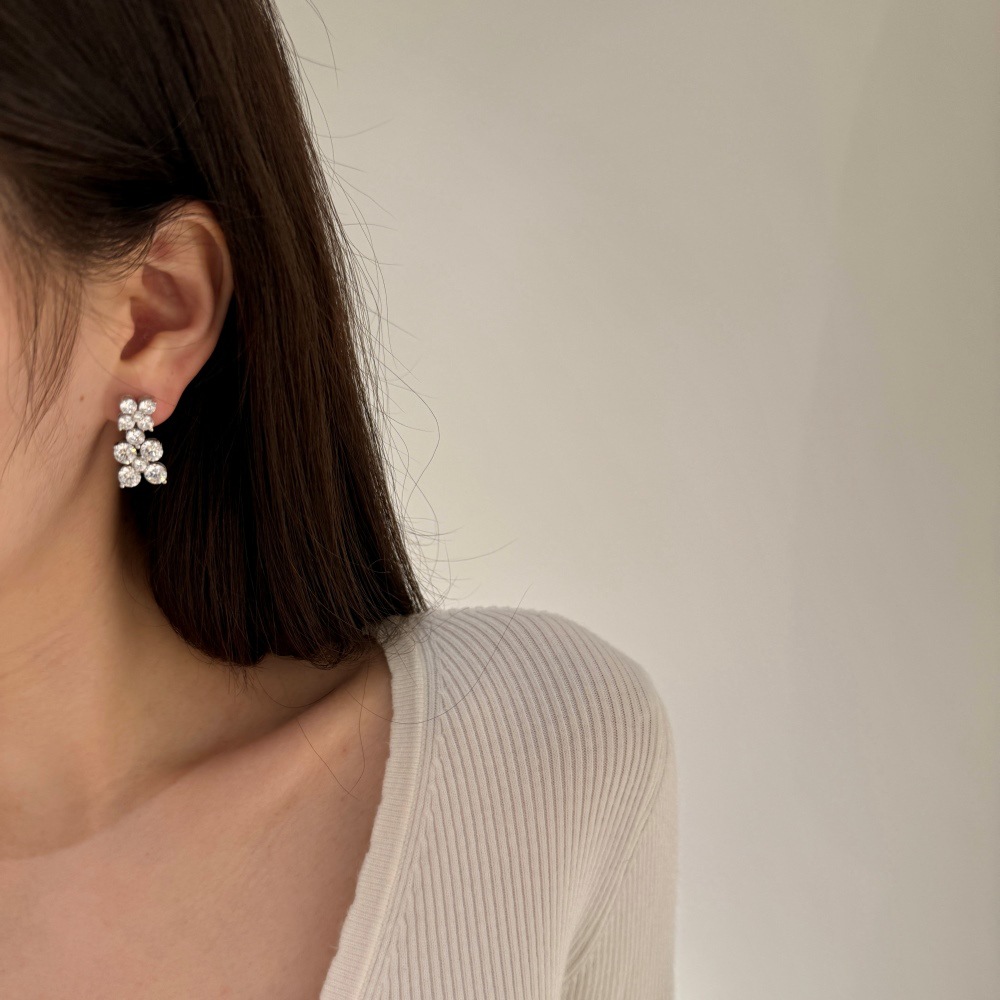925 Silver Floral Cluster Statement Stud Earrings 40200783