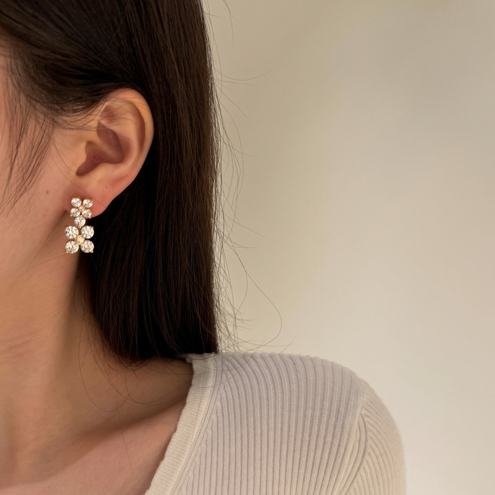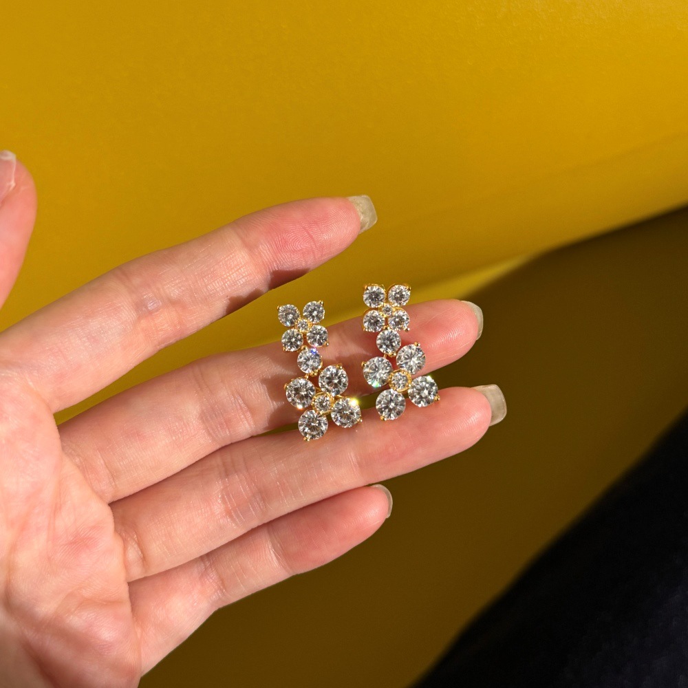 Elevate your formal and bridal jewelry categories with our Wholesale 925 Silver Floral Cluster Statement Studs. Clustered floral motifs and high-impact sparkle are massive drivers for eveningwear sales. This SKU features a stunning double-flower silhouette crafted entirely from brilliant round-cut clear crystals. Available in highly commercial silver and gold finishes, these hypoallergenic S925 earrings deliver exceptional boutique-level perceived value and secure push-back closures. A mandatory, high-margin anchor for your "Bridal Gifting" and "Evening Glamour" assortments.