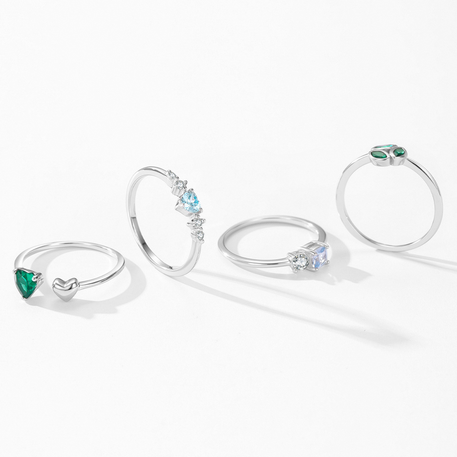 These wholesale 925 sterling silver geometric marquise gemstone rings feature a sleek, contemporary design with three marquise-cut green zircons. Perfect for jewelry retailers and online boutiques, this ring combines modern minimalism with timeless sparkle. Crafted from high-quality sterling silver, it offers excellent shine, durability, and hypoallergenic comfort—ideal for customers seeking elegant yet affordable fine jewelry.