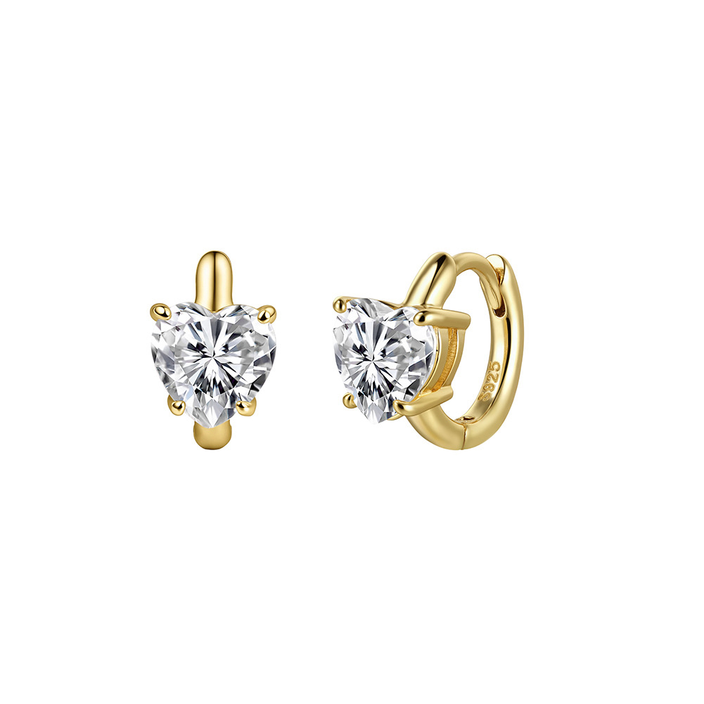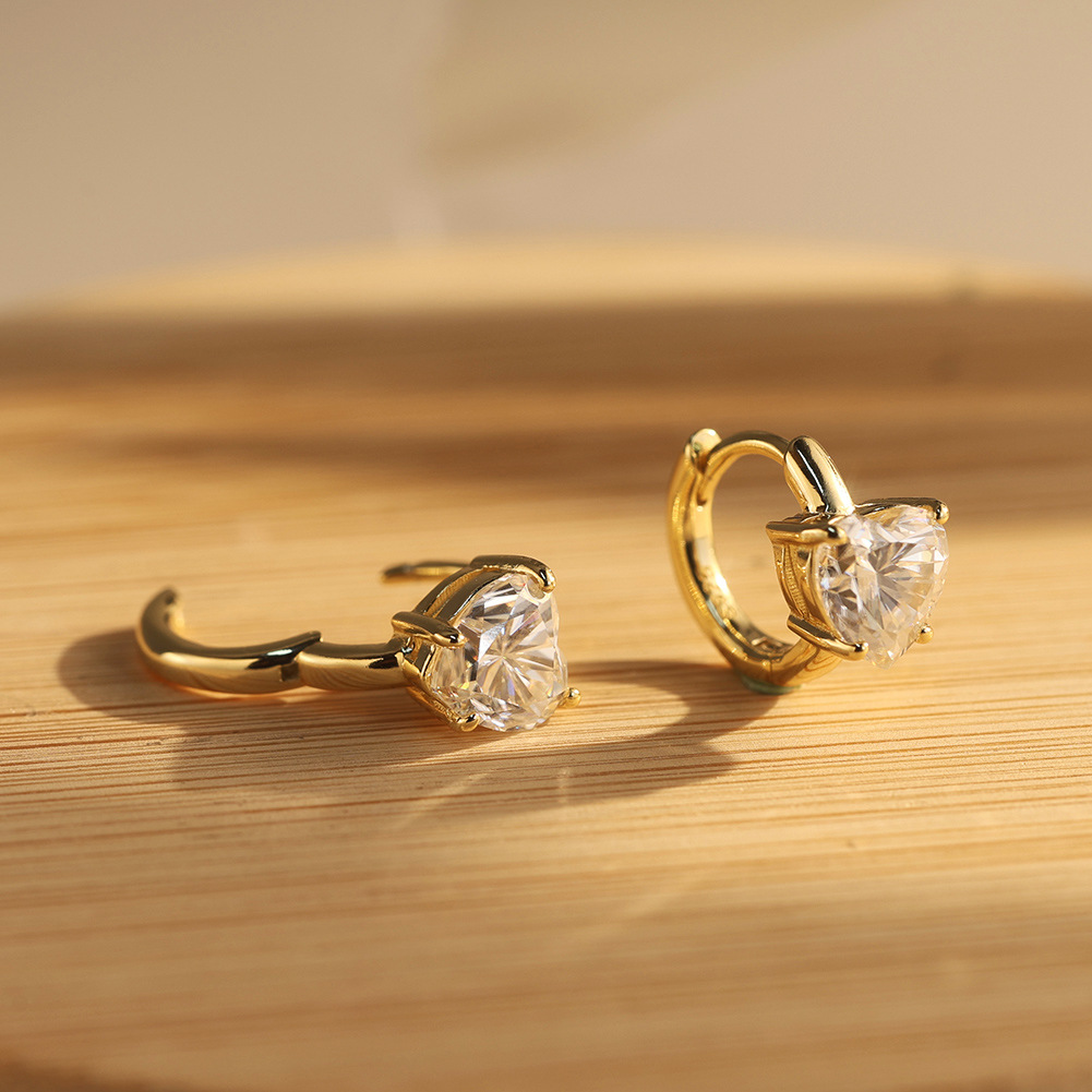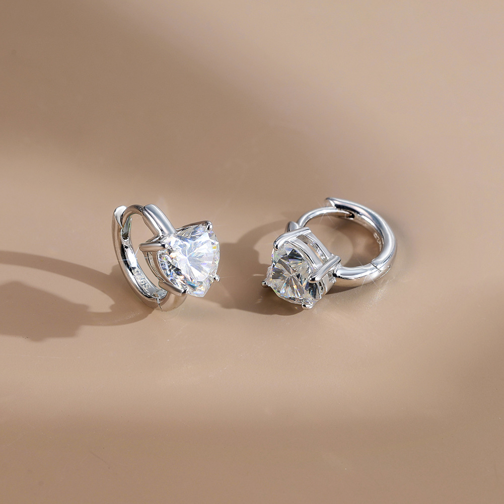 Capture the lucrative romantic gifting market with our Wholesale 925 Sterling Silver 1ct Heart Moissanite Hoop Earrings. This SKU brilliantly combines two massive retail trends: the highly practical and sought-after "huggie" hoop silhouette, and the emotional appeal of a "fancy cut" heart-shaped gemstone. The secure, hinged hoop design is highly favored by consumers for its comfort and security, drastically reducing the risk of lost earring backs. Available in both classic silver and highly requested yellow-gold plating options, this premium Moissanite item guarantees high perceived value and excellent margins. An absolute essential for your "Valentine's Day," "Bridal Gifting," and "Everyday Fine Jewelry" assortments.