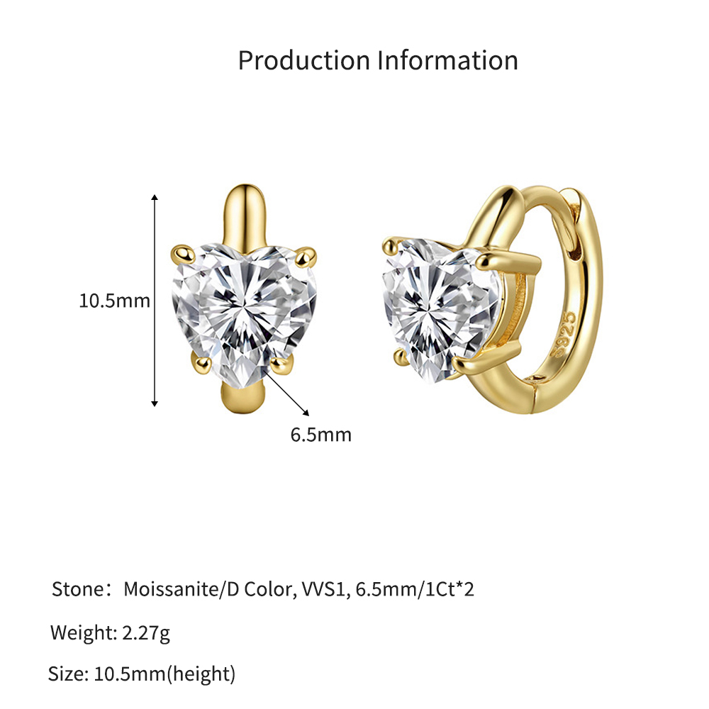 925 Sterling Silver 1Ct Heart Moissanite Hoop Earrings 110100071 - image1925 Sterling Silver 1Ct Heart Moissanite Hoop Earrings 110100071 - image2