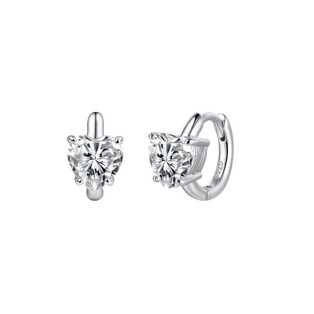 925 Sterling Silver 1Ct Heart Moissanite Hoop Earrings 110100071