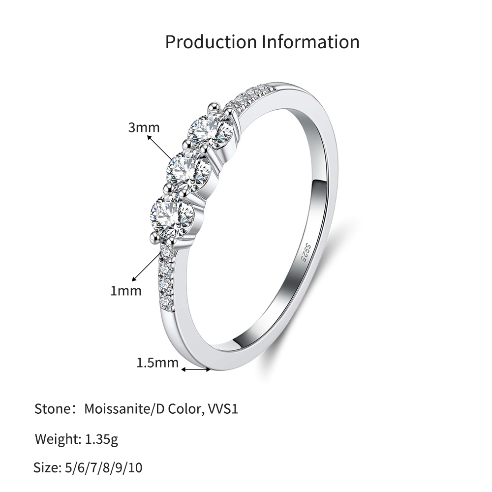 Celebrate your journey of love with our 3-Stone Moissanite Pavé Engagement Ring. This deeply romantic "Past, Present, and Future" design features three brilliant round-cut Moissanite stones, representing the milestones of your relationship. The radiant center trio is beautifully complemented by a delicate band adorned with shimmering pavé-set stones, adding an extra layer of luxurious sparkle. Crafted from premium, highly polished S925 sterling silver, this ring is a breathtaking and meaningful choice for an engagement, a milestone anniversary, or a promise ring.