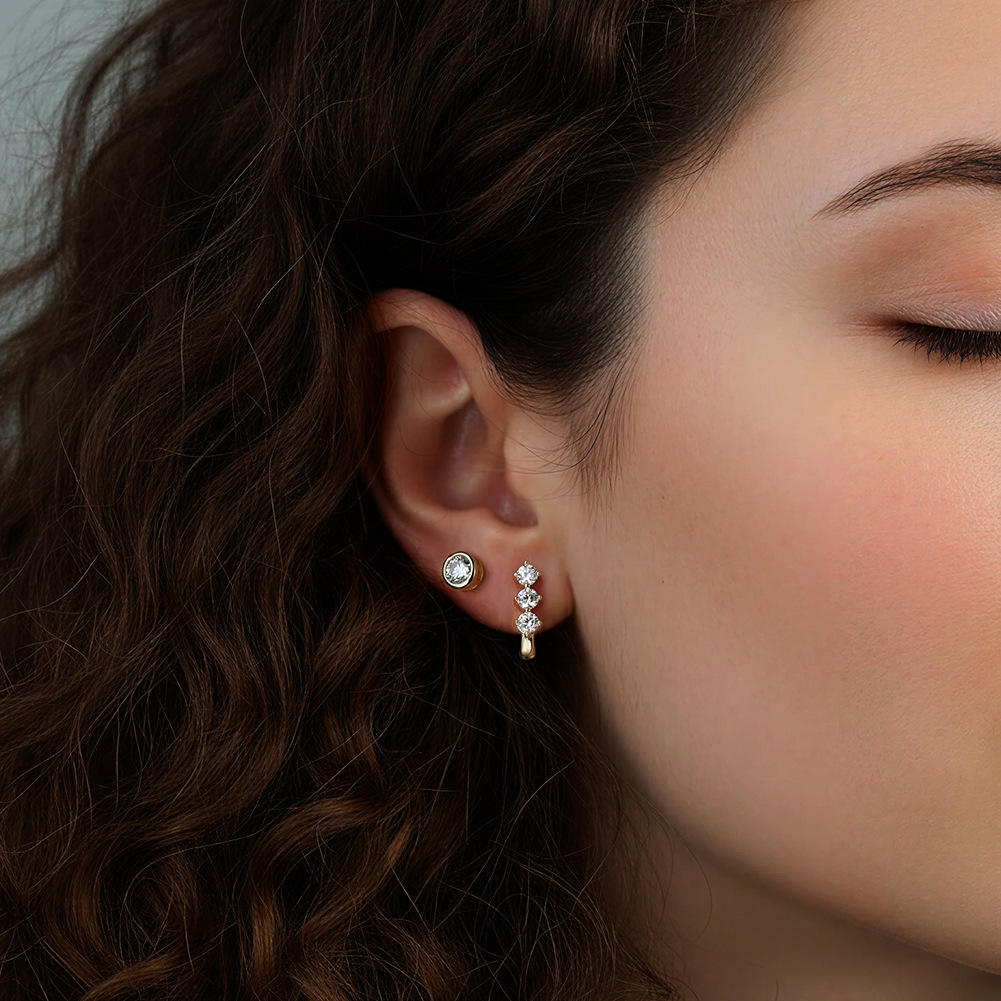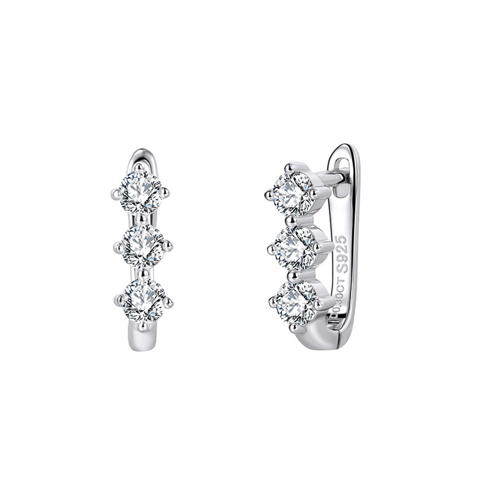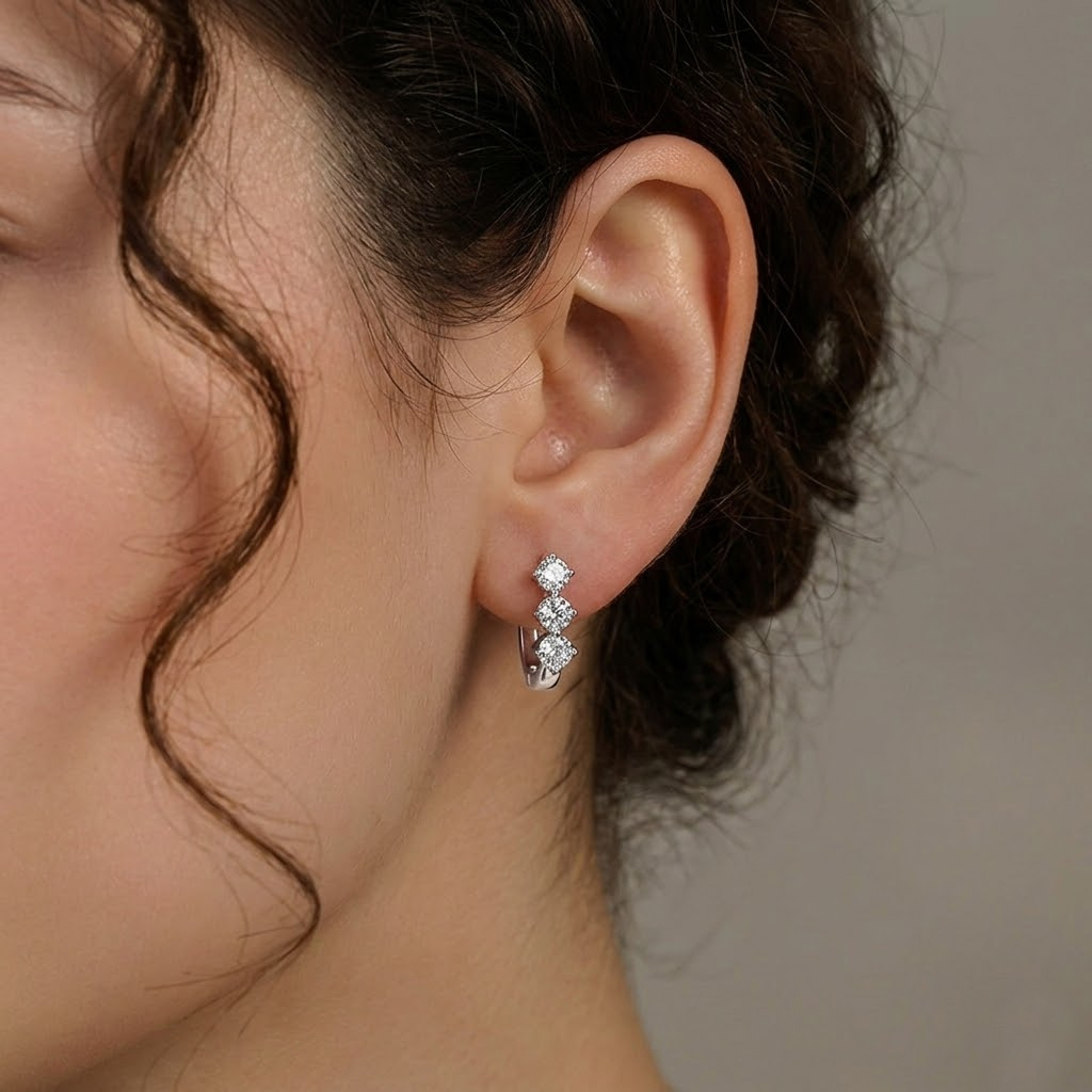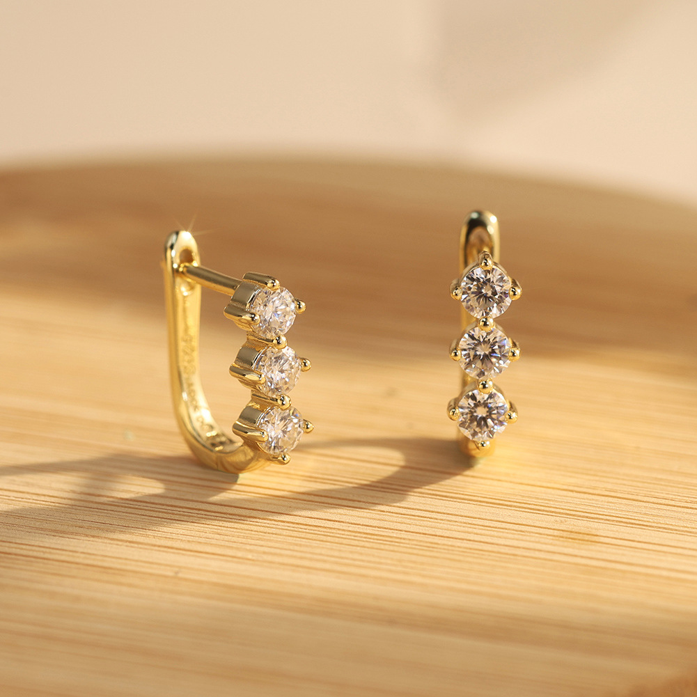 Capitalize on the highly profitable ear-stacking trend with our Wholesale 925 Sterling Silver 3-Stone Moissanite U-Shaped Earrings. The architectural "U" shape is a modern, high-demand update to the classic circular huggie hoop, offering a fresh, geometric silhouette that consumers actively seek. This SKU features a highly marketable 3-stone Moissanite pavé setting, providing an upscale, diamond-like aesthetic at a highly competitive wholesale price. Clearly stamped with S925 on the inner band and available in both silver and yellow-gold platings, this versatile, high-margin item is an absolute must-have for your "Everyday Essentials," "Minimalist," and "Ear Curating" retail categories.