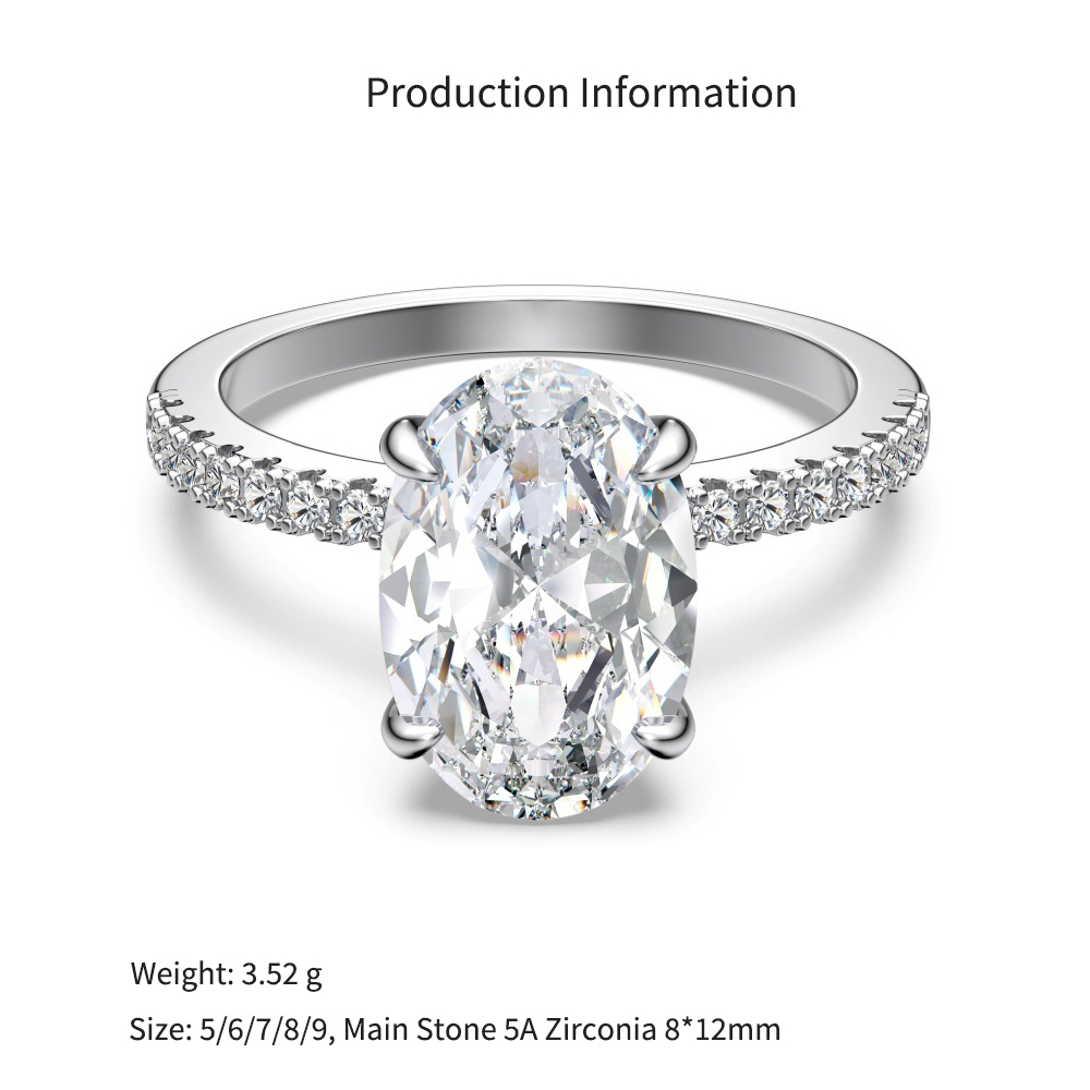 Command premium price points in your bridal categories with our wholesale-exclusive oval solitaire ring. The oval cut is a massive retail driver, offering a highly flattering silhouette and incredible perceived carat size. This spectacular SKU features a flawless, large-carat 8x12mm 5A oval zircon set on a delicate silver band elevated by brilliant micro-pave accents. Crafted from hypoallergenic S925 silver, it delivers incredible, fine-jewelry-level perceived value and substantial presence on the hand. A mandatory, high-margin anchor for your bridal alternatives, romantic gifting, and luxury statement ring assortments.