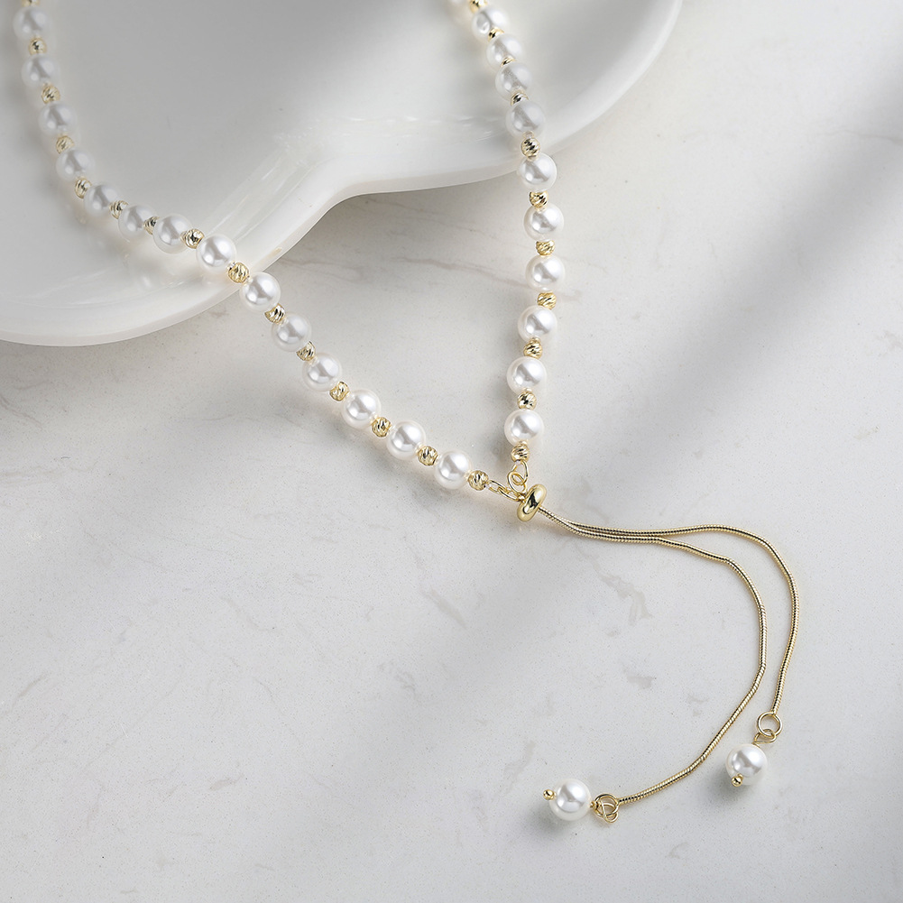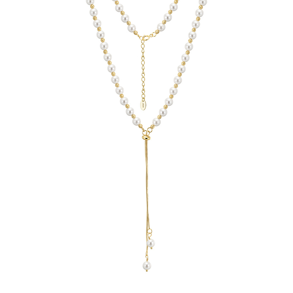 Maximize your inventory's versatility and retail appeal with our Wholesale 925 Sterling Silver Adjustable Pearl Lariat Tassel Necklace. "Y-necklaces" (or lariats) are highly sought after because their linear drop beautifully elongates the torso and flatters virtually any garment. This SKU elevates the traditional pearl strand by incorporating an innovative, functional sliding clasp, allowing your customers to interact with the jewelry and completely customize the length of the dangling tassel. This multi-wear functionality provides massive perceived value. Utilizing flawless shell pearls ensures a premium, uniform luster while maintaining highly competitive wholesale costs for excellent retail margins. Available in essential silver and yellow-gold platings, this dynamic piece is a mandatory anchor for your "Evening Wear," "Modern Bridal," and "Customizable Jewelry" collections.