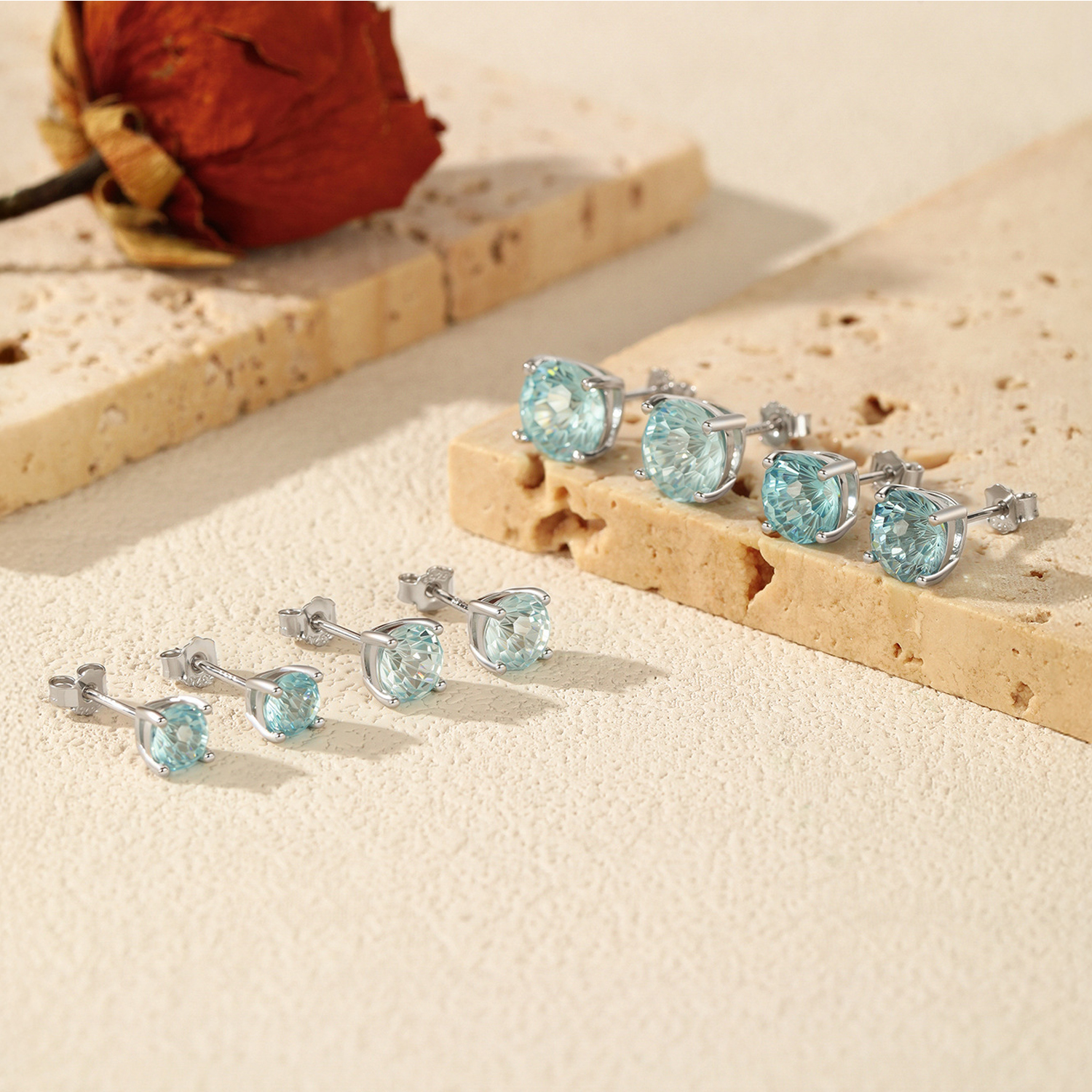 Refresh your "Spring/Summer" assortment with the cool tones of our Wholesale 925 Sterling Silver Aquamarine Blue Fireworks Cut Studs. This SKU mimics the look of fine Aquamarine (the March birthstone), making it a perennial favorite for gifting. The distinguishing feature is the "Fireworks Cut," which provides a higher refractive value and more visual interest than standard step-cut or brilliant-cut stones. Offering a full size run from 5mm to 8mm allows you to cater to customers seeking everything from subtle "second hole" studs to bold main attractions.