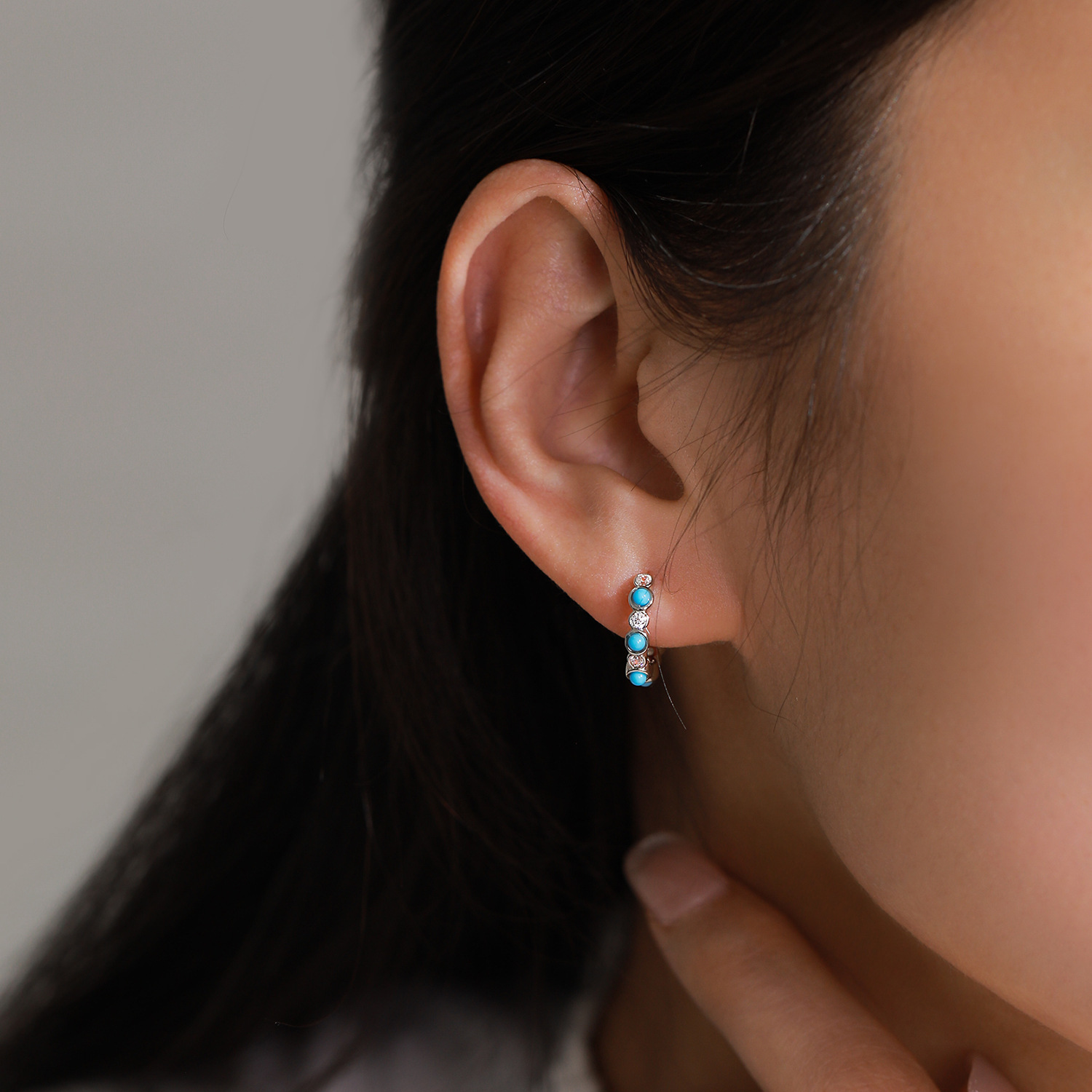 These wholesale 925 sterling silver hoop earrings combine contemporary style with subtle luxury. Designed with alternating smooth beads and sparkling zircon stones, they’re perfect for modern jewelry collections. Offered in turquoise and black versions, these hoops suit a wide range of retail markets. Made with premium sterling silver for durability and shine, they are an excellent choice for resellers seeking elegant, high-demand styles.