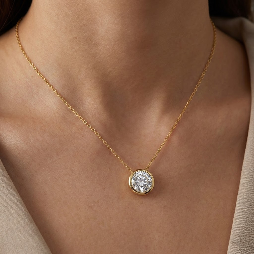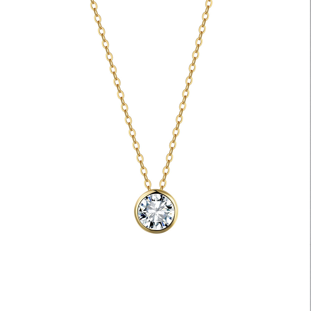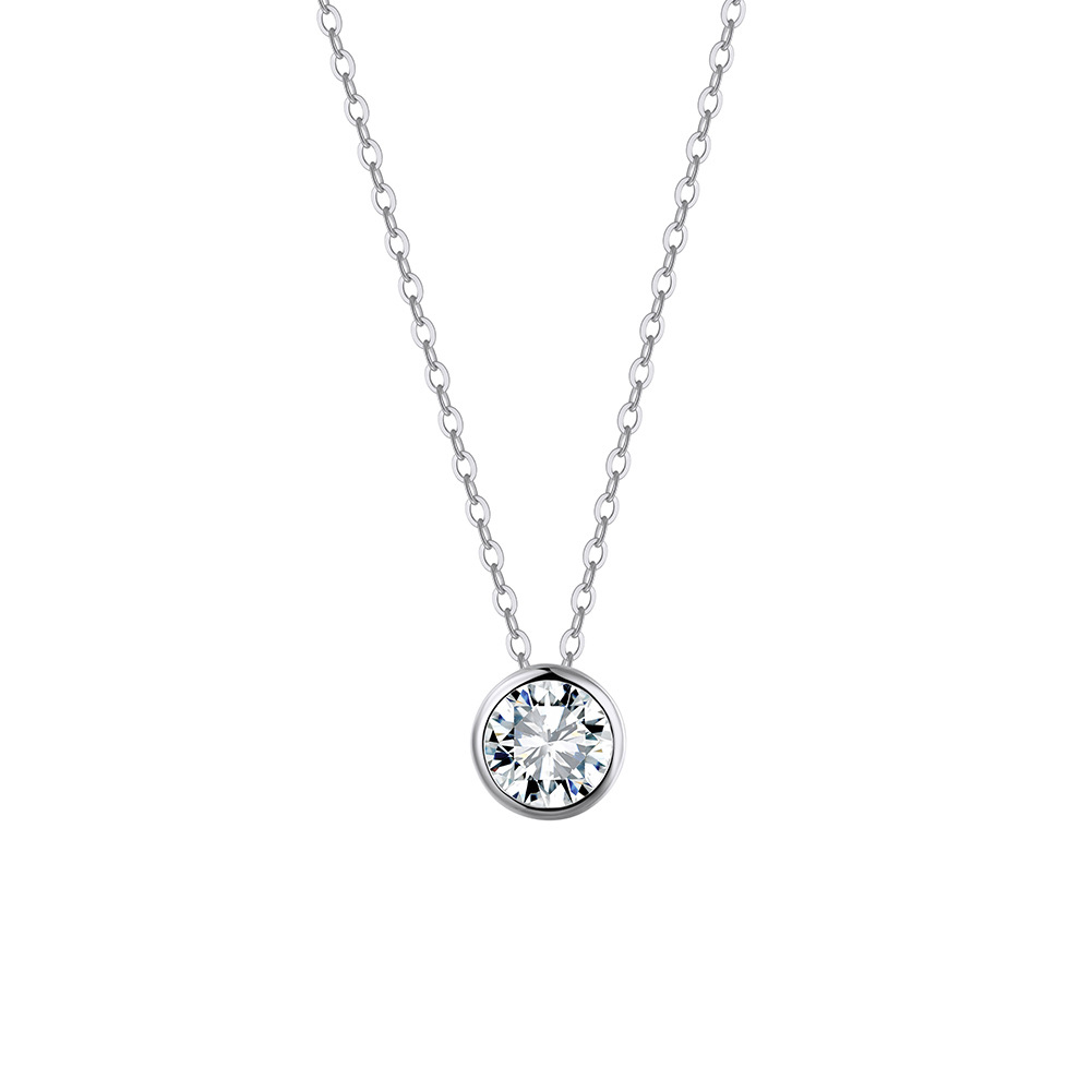 Streamline your everyday jewelry offerings with our Wholesale 925 Sterling Silver Bezel Set Moissanite Necklace. The "Bezel" or "Bubble" setting is a highly requested style for modern consumers actively seeking durable, snag-free jewelry for daily wear. Offering this SKU in two of the most popular carat weights (1ct and 2ct) and two versatile metal finishes (silver and gold) allows retailers to perfectly capture a wide range of customer preferences. Clearly stamped with S925, this low-maintenance, high-margin piece is an absolute staple for "Minimalist," "Office Wear," and "Everyday Luxury" collections.