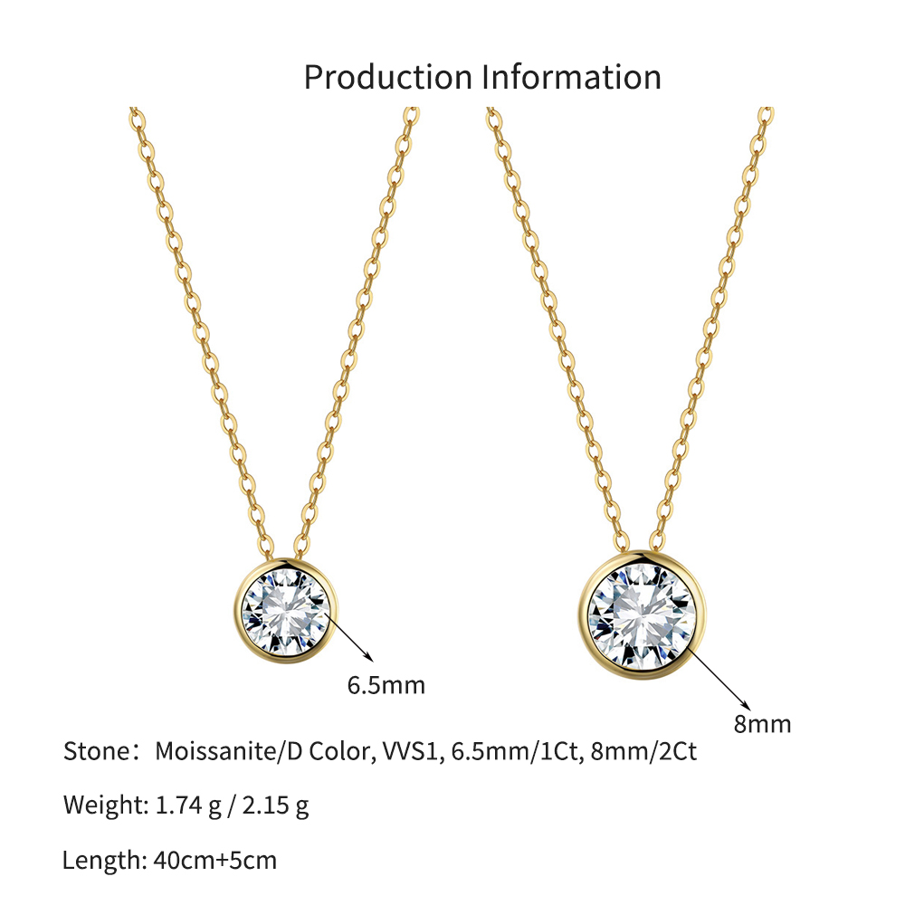 925 Sterling Silver Bezel Set 1Ct 2Ct Moissanite Necklace 110300038