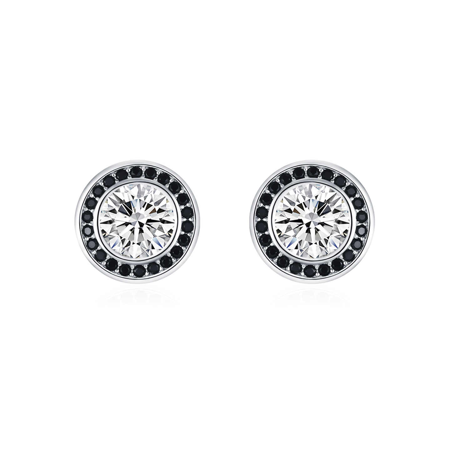 925 Sterling Silver Black White Round Zircon Stud Earring 40200723 - image1925 Sterling Silver Black White Round Zircon Stud Earring 40200723 - image2