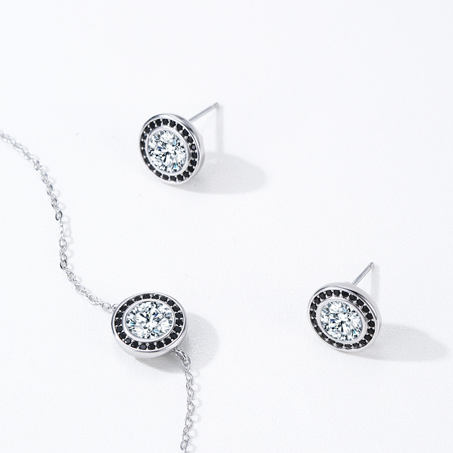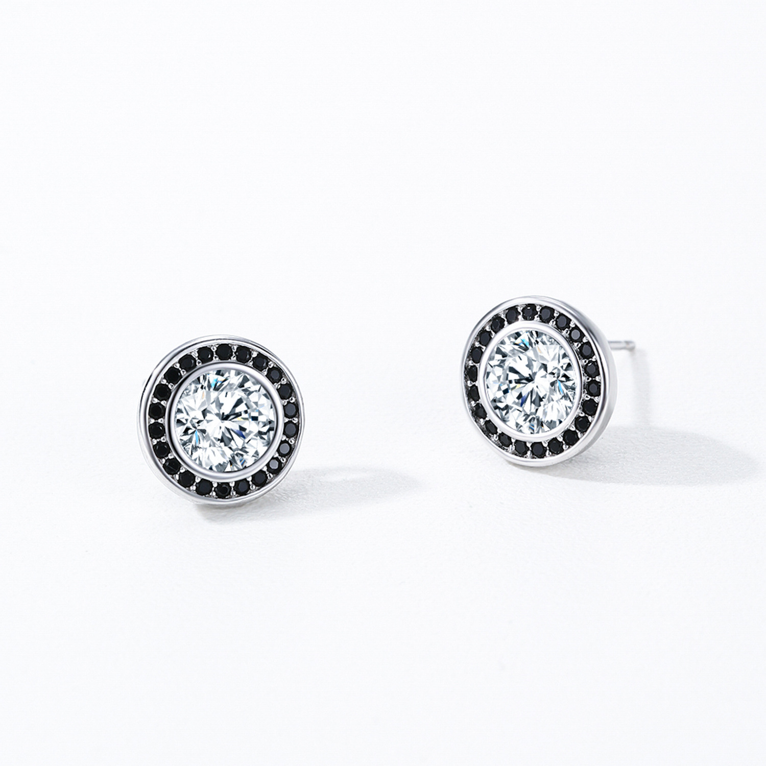 These 925 sterling silver round stud earrings feature a striking combination of brilliance and contrast. The dazzling white central zircon is encircled by a ring of deep black stones, creating a bold yet elegant black-and-white aesthetic. Crafted with precision for high shine and durability, these earrings add a sophisticated edge to both casual and formal looks. Perfect for those who appreciate timeless glamour with a modern twist.