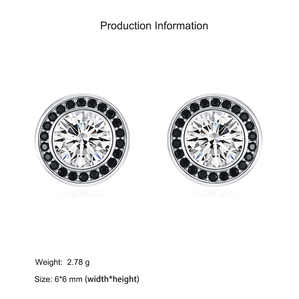 925 Sterling Silver Black White Round Zircon Stud Earring 40200723