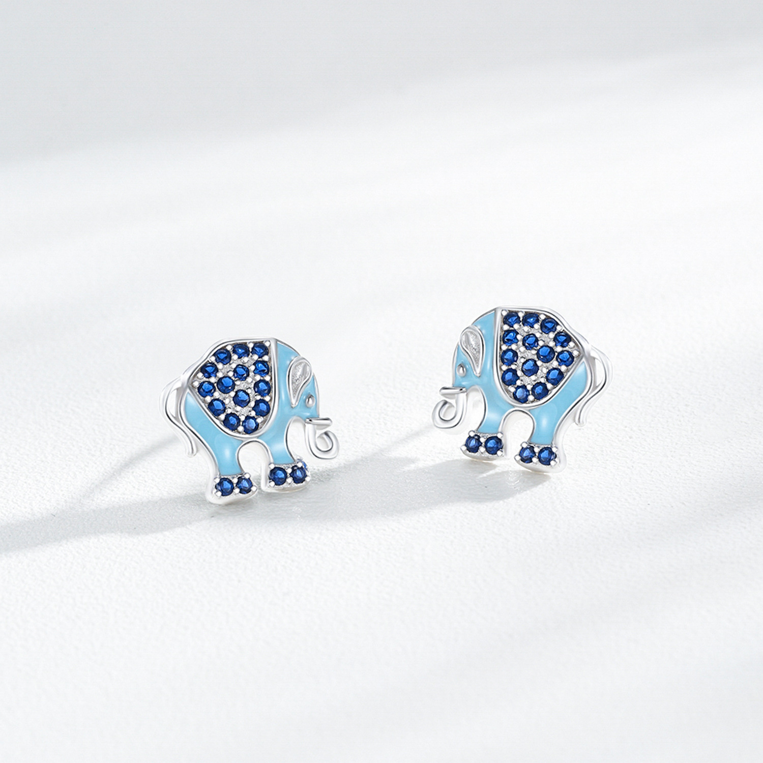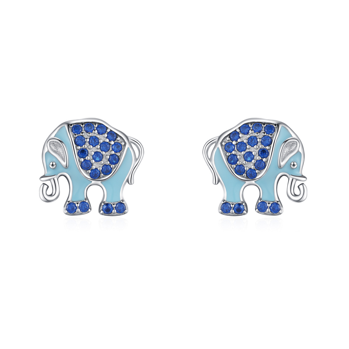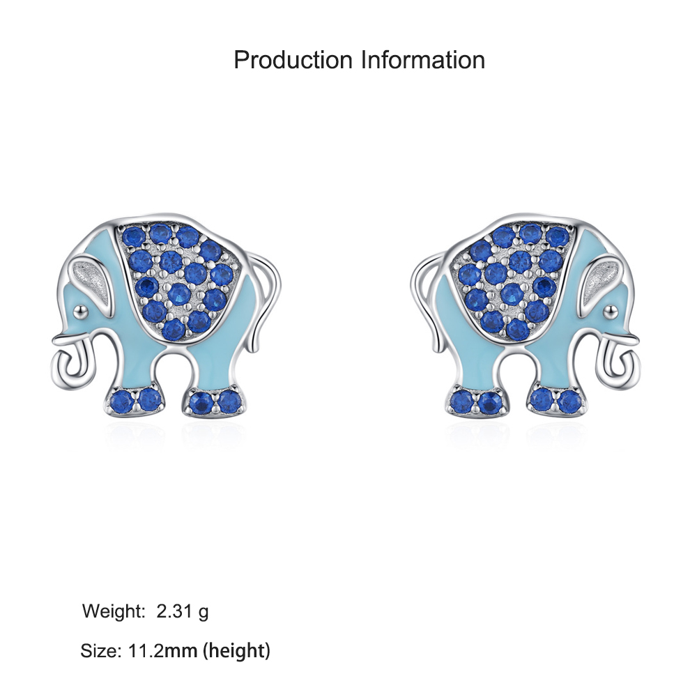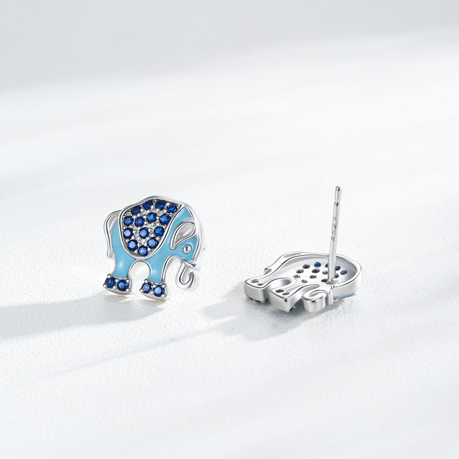 Bring a touch of whimsy and good luck to your style with these 925 sterling silver elephant earrings. Beautifully detailed with sky-blue enamel and micro-pavé blue zircons, they add a pop of color and sparkle to any outfit. Crafted from high-quality sterling silver, these earrings are hypoallergenic, lightweight, and comfortable for everyday wear. Perfect for animal lovers or those who adore charming, playful jewelry pieces that stand out.