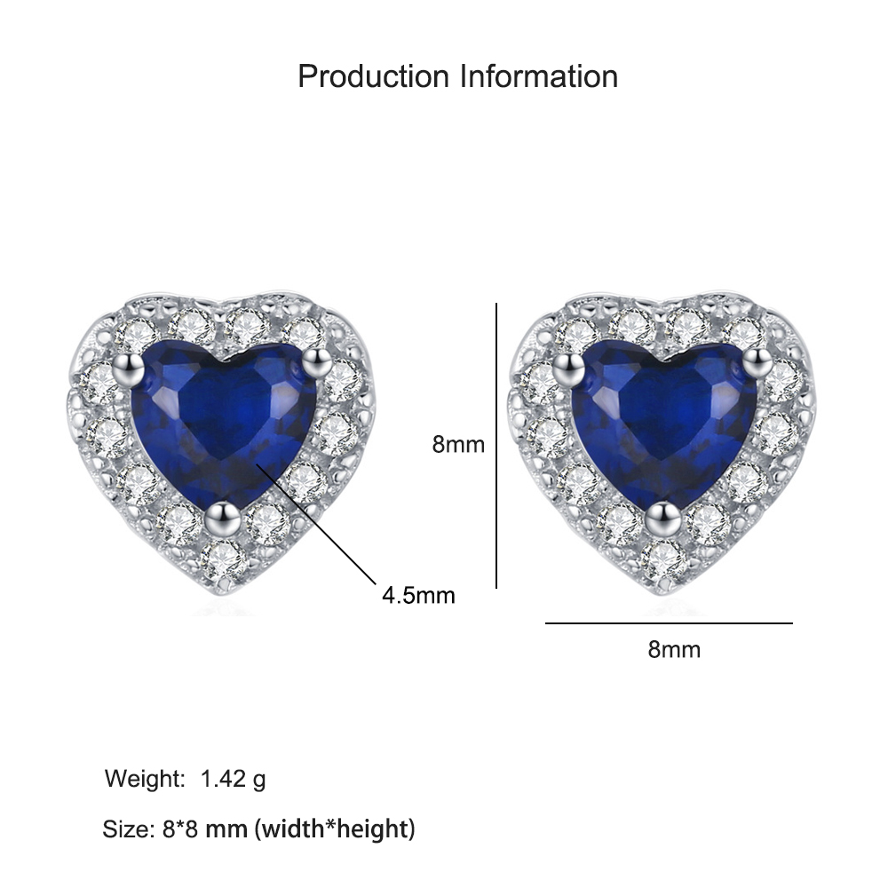 925 Sterling Silver Blue Heart Zircon Stud Earring 40200705