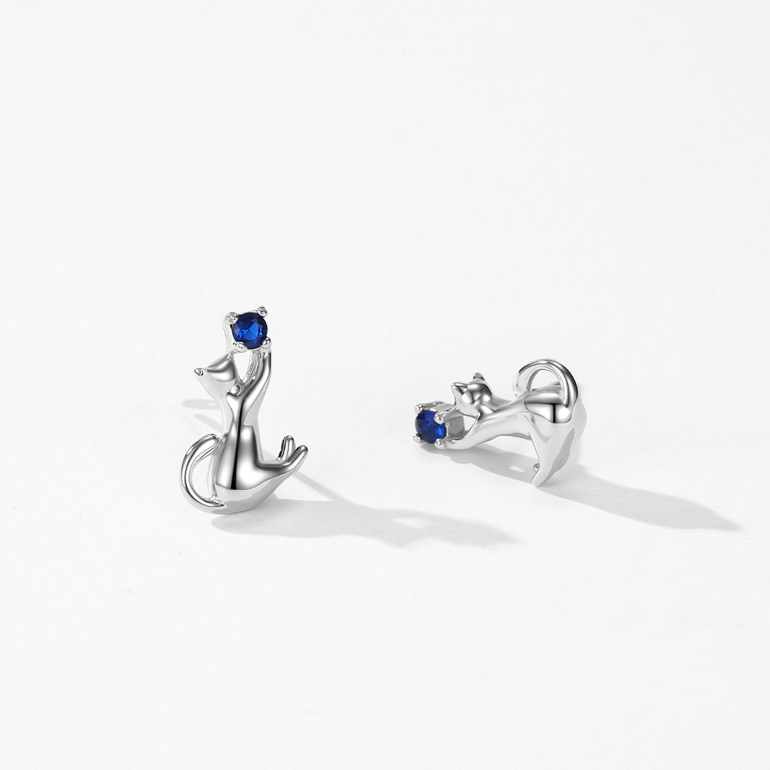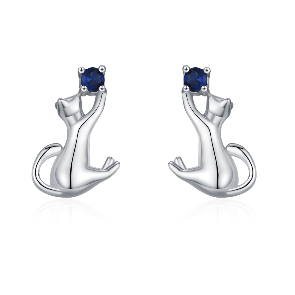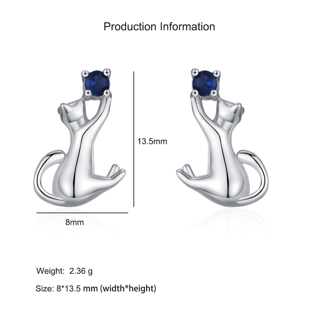 925 Sterling Silver Blue Zircon Cat Stud Earring 40200650