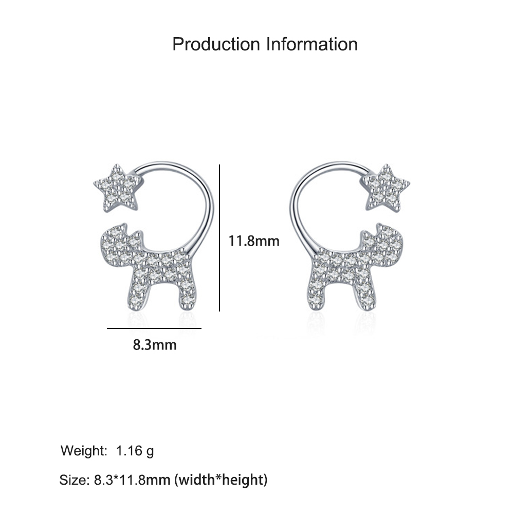 925 Sterling Silver Cat Star Zircon Stud Earring 40200661