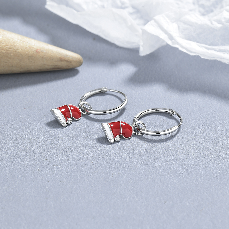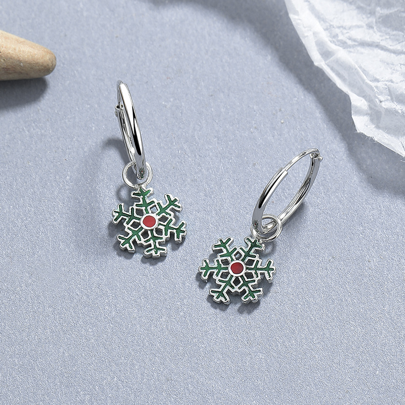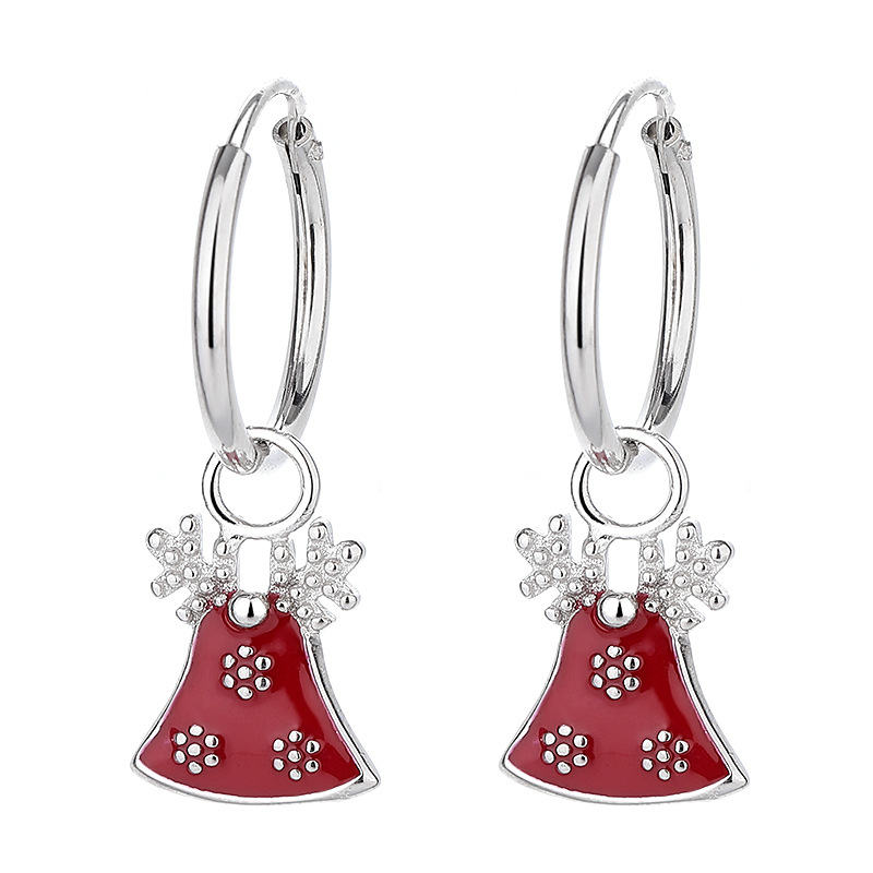 925 Sterling Silver Christmas Bell Snowflake Drop Hoop Earring 60300207