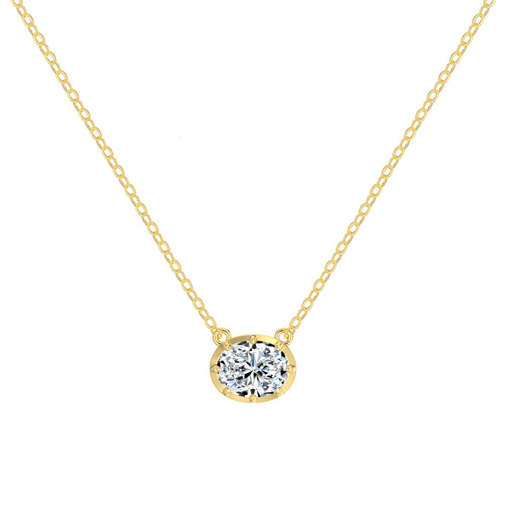 Discover a modern twist on timeless elegance with our Classic 8-Prong East-West Oval Zirconia/Moissanite Necklace. This stunning pendant features a brilliant oval-cut Moissanite (or Zirconia) stone set horizontally—a trendy orientation known as an "East-West" setting—which beautifully spans the collarbone. The dazzling center stone is securely held by a refined 8-prong setting that enhances its shape and maximizes light reflection. Crafted from premium S925 sterling silver, it is available in a sleek silver finish or a radiant yellow-gold finish, making it a versatile and sophisticated staple for any jewelry lover's collection.