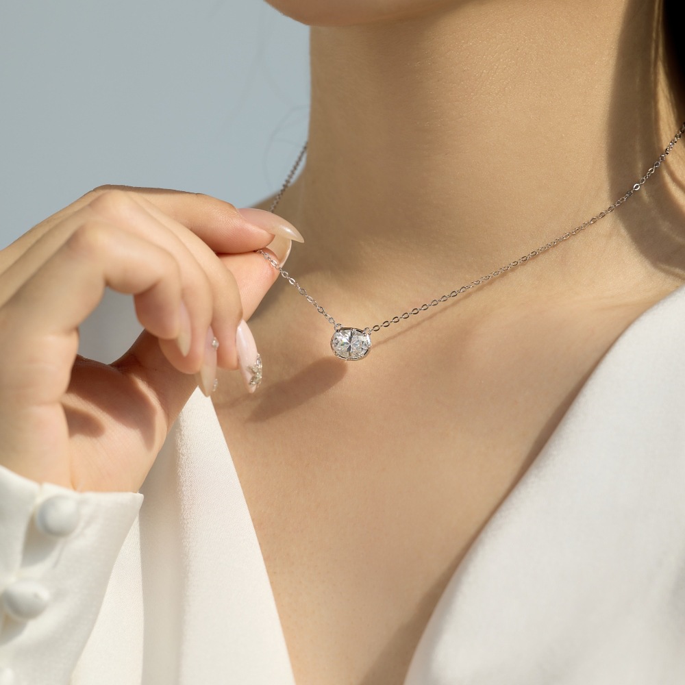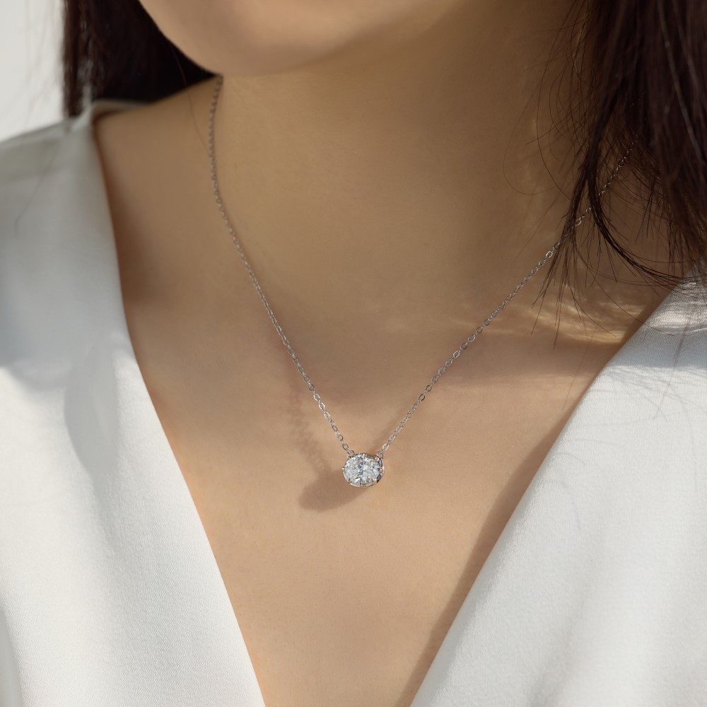 925 Sterling Silver Classic 8-Prong Oval Zirconia Moissanite Necklace 110300041 - image3925 Sterling Silver Classic 8-Prong Oval Zirconia Moissanite Necklace 110300041 - image4