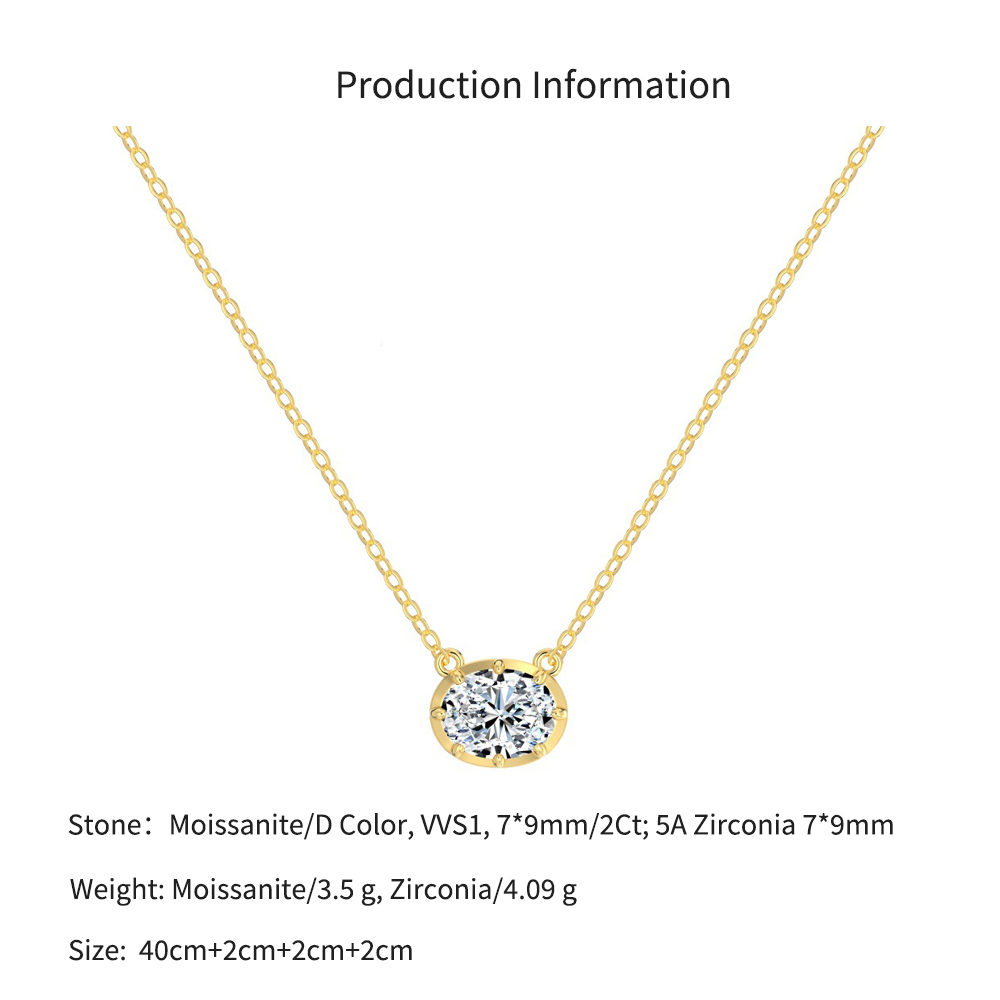 925 Sterling Silver Classic 8-Prong Oval Zirconia Moissanite Necklace 110300041