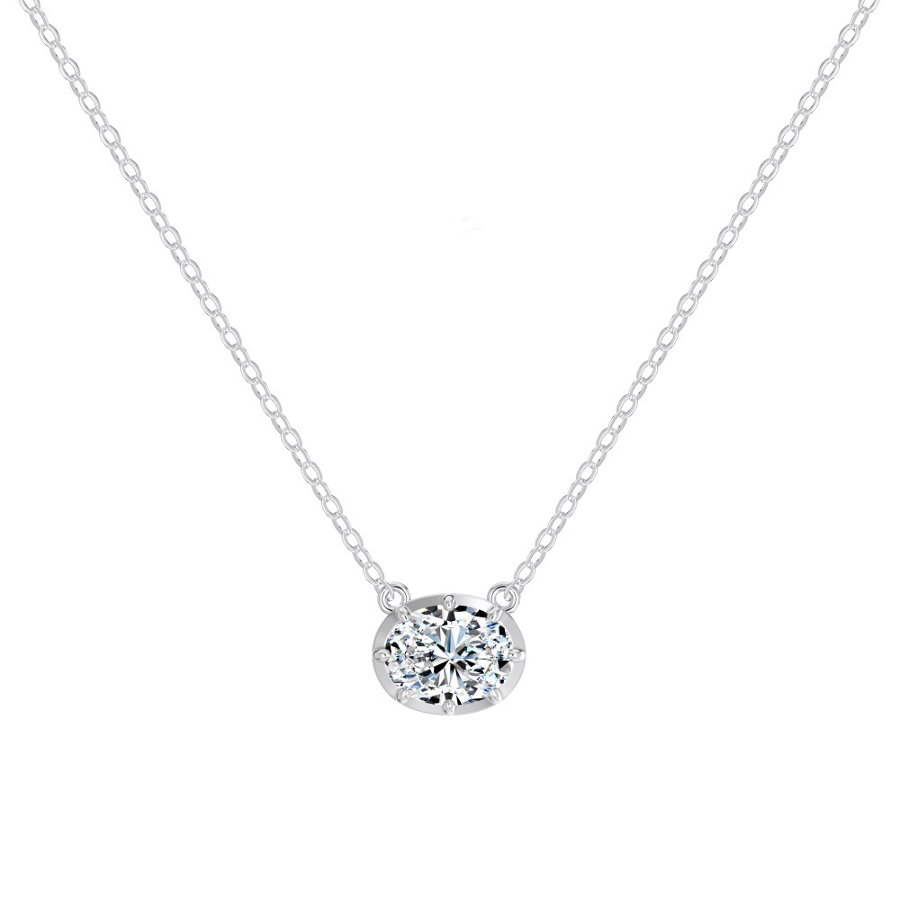 925 Sterling Silver Classic 8-Prong Oval Zirconia Moissanite Necklace 110300041 - image1925 Sterling Silver Classic 8-Prong Oval Zirconia Moissanite Necklace 110300041 - image2