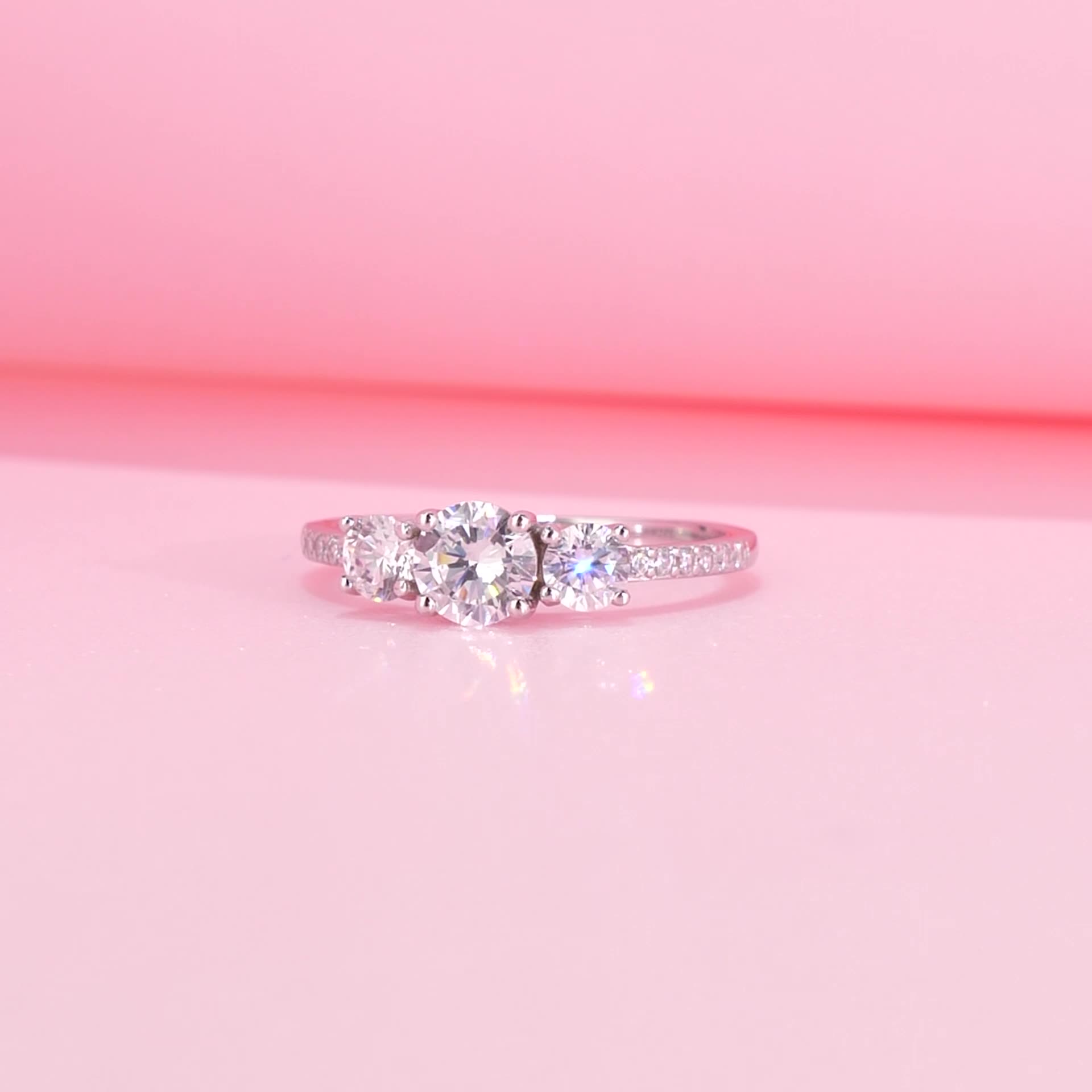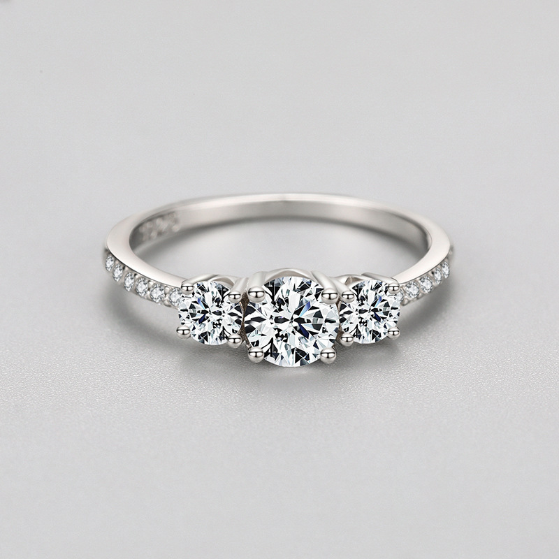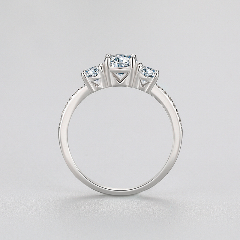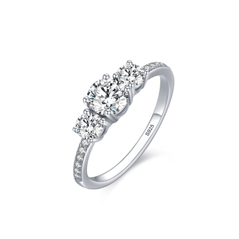 A best-selling classic, this 925 sterling silver three-stone ring showcases timeless beauty with premium cubic zirconia brilliance. The rhodium-plated finish ensures lasting shine and durability, while its symbolic three-stone design appeals to bridal, fashion, and gift markets alike. Perfect for jewelry retailers and online stores seeking elegant, high-margin silver collections.