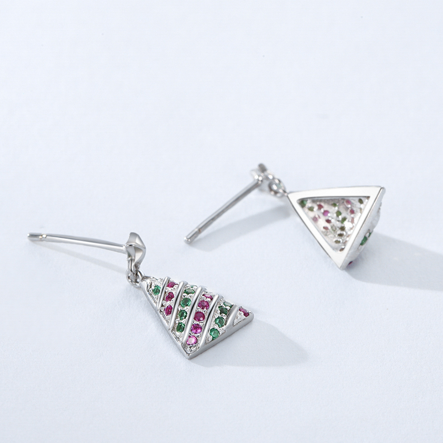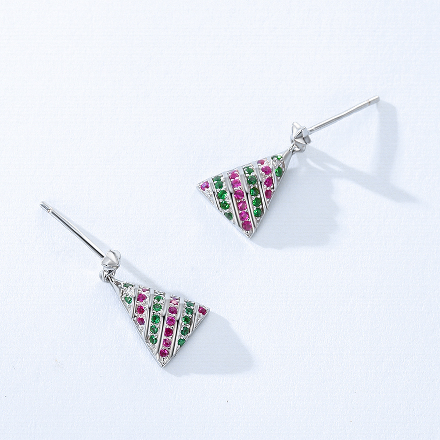 Add festive flair to your holiday collection with these wholesale 925 sterling silver Christmas tree earrings. Adorned with vivid pink and green zircon stones and topped with a silver star, they capture the joyful spirit of the season. Lightweight, durable, and hypoallergenic, these earrings are perfect for boutique Christmas collections, gift shops, and online holiday promotions. A reliable best-seller for festive jewelry lines.