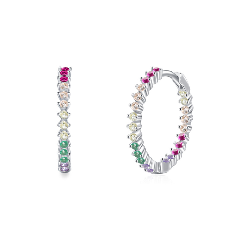 925 Sterling Silver Colorful Zircon Hoop Earring 60200353