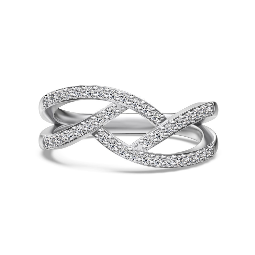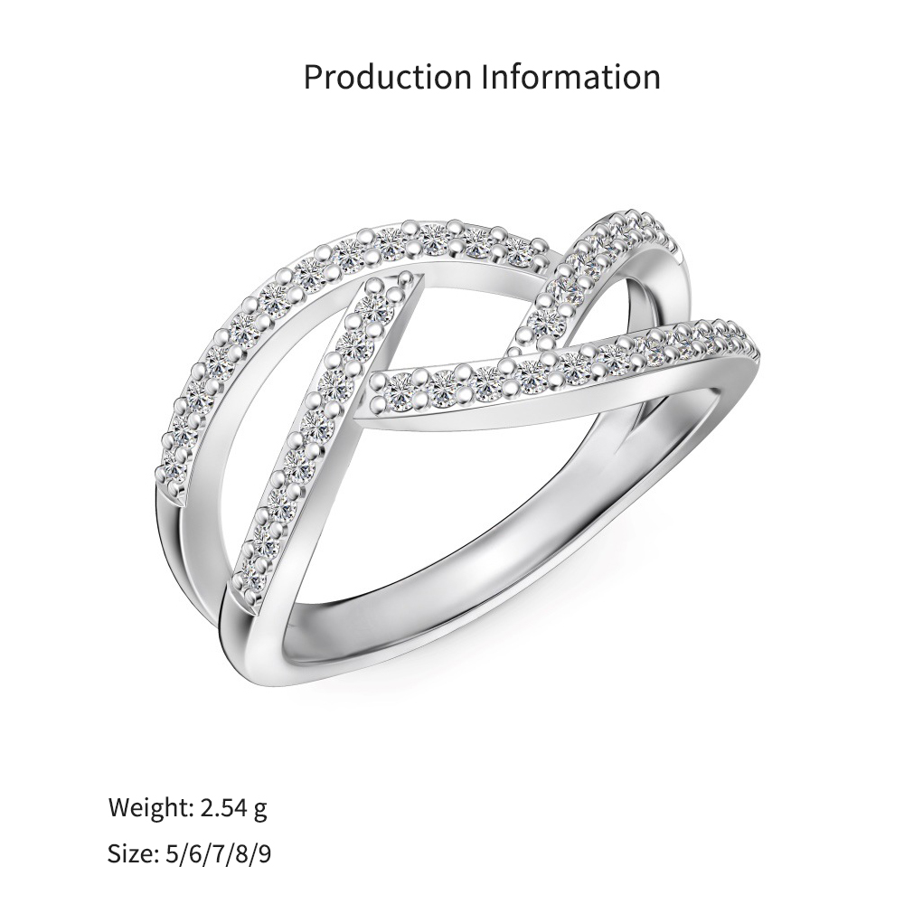Capitalize on the massive architectural jewelry trend with our wholesale-exclusive crisscross pave ring. This highly commercial SKU features an elegant, intertwining geometric design that provides the highly sought-after multi-band stacked illusion in a single, easy-to-wear piece. The sweeping lines are meticulously encrusted with brilliant round-cut clear crystals, maximizing light return and offering exceptional boutique-level perceived value. Crafted from hypoallergenic S925 sterling silver, this hollow-out design ensures substantial finger coverage while remaining lightweight and comfortable for daily wear. A mandatory, high-margin anchor for your modern statement, everyday luxury, and contemporary bridal alternative assortments, designed for rapid inventory turnover.