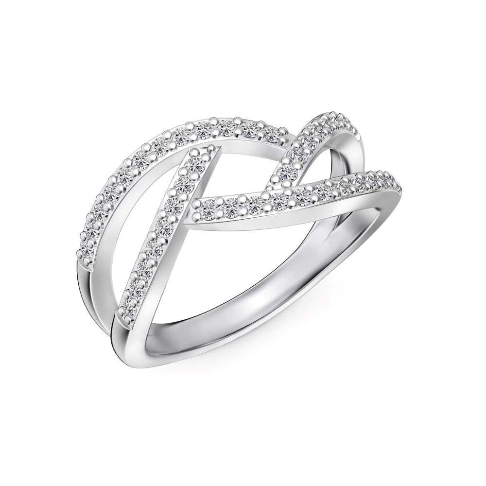925 Sterling Silver Crisscross Pave Geometric Ring 70100594