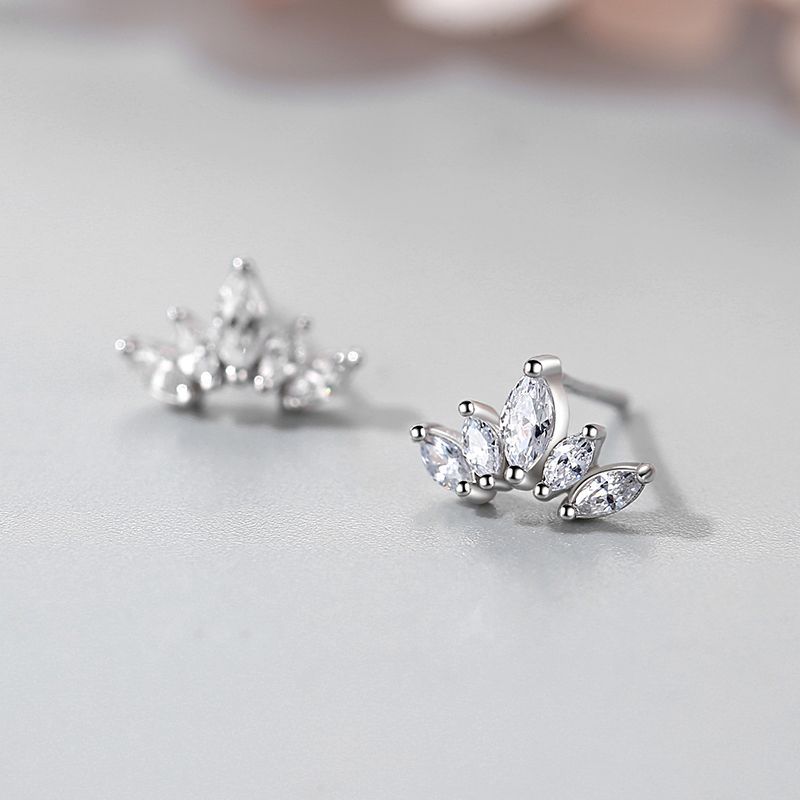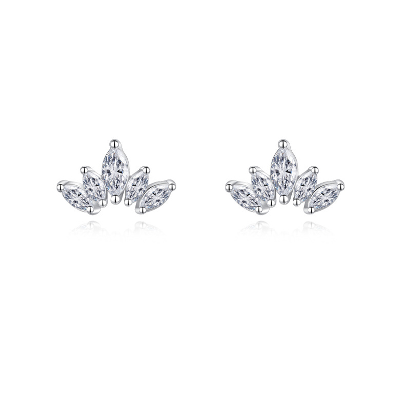 Radiating refined sparkle, these 925 sterling silver earrings feature a delicate crown-inspired design with marquise-cut zircon stones. Each stone is precisely set to create a graceful shape that shines from every angle. Lightweight and versatile, these studs elevate any outfit — perfect for both daily wear and special occasions, offering a timeless touch of royalty and sophistication.