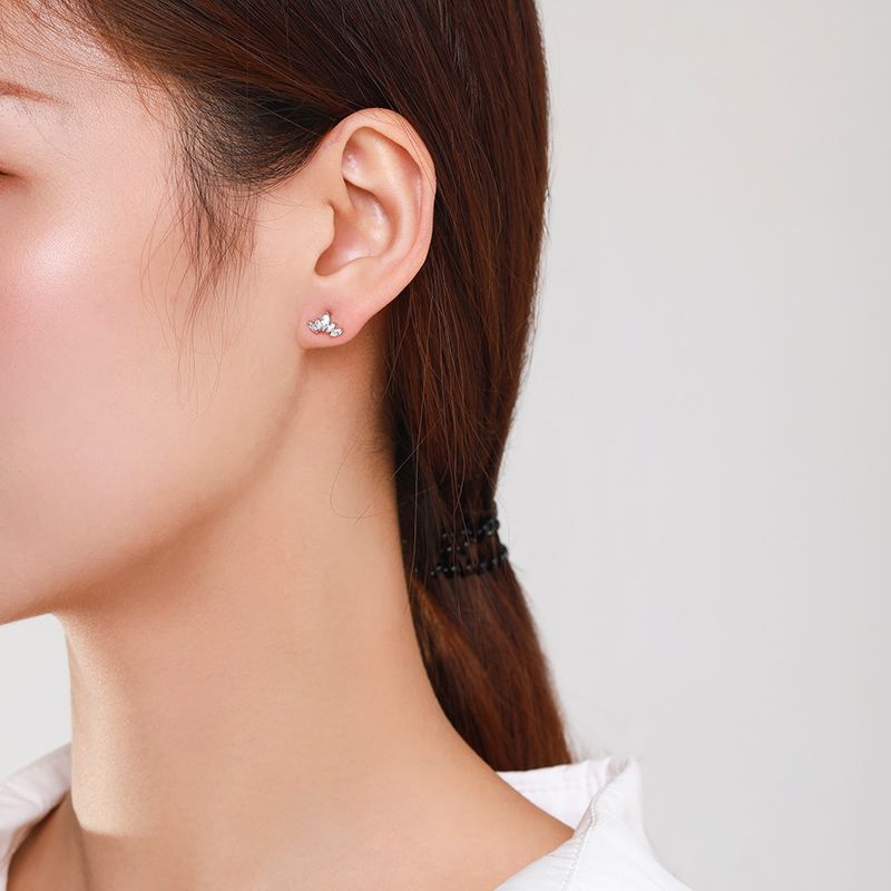 These wholesale 925 sterling silver earrings feature a chic crown-shaped cluster of marquise-cut zircon stones, combining modern simplicity with timeless glamour. Ideal for jewelry retailers and online stores seeking popular, high-quality pieces that appeal to a wide audience. Perfect for bridal collections, daily jewelry lines, or elegant gift sets.