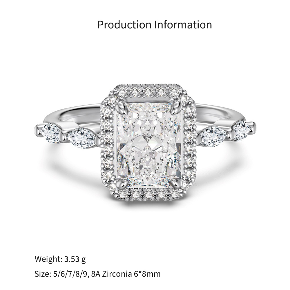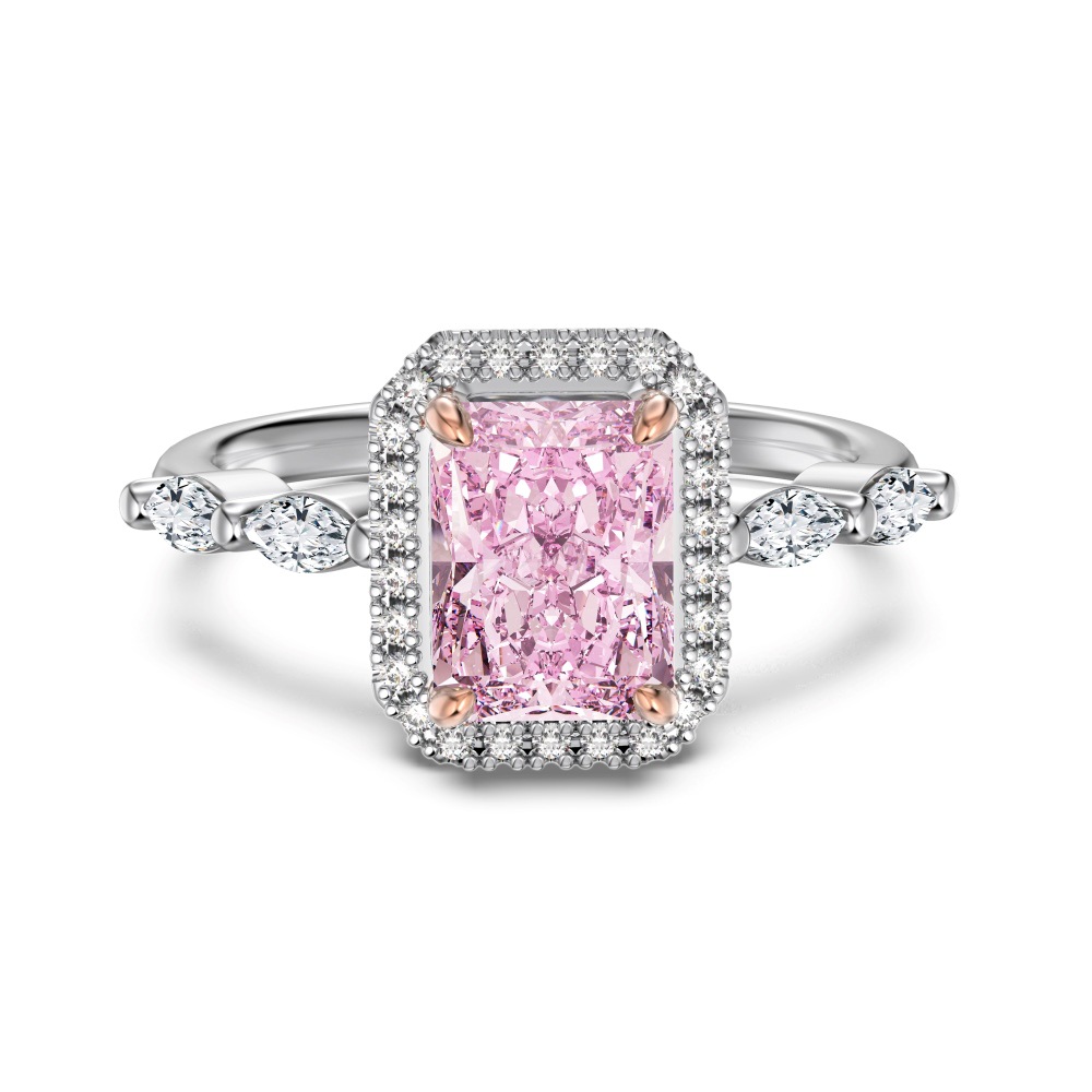 Dominate the luxury bridal alternative market with our Wholesale 925 Silver Crushed Ice Radiant Halo Ring. The "crushed ice" faceting technique is a highly viral, premium trend that maximizes stone brilliance and perceived carat value. This spectacular SKU features a massive rectangular 8A zircon surrounded by a seamless pave halo and sophisticated marquise side stones. Available in classic clear and highly requested fancy pink colorways, this hypoallergenic S925 ring delivers incredible, fine-jewelry-level craftsmanship. A mandatory, high-margin anchor for your "Bridal Elegance" and "Luxury Statement" assortments.