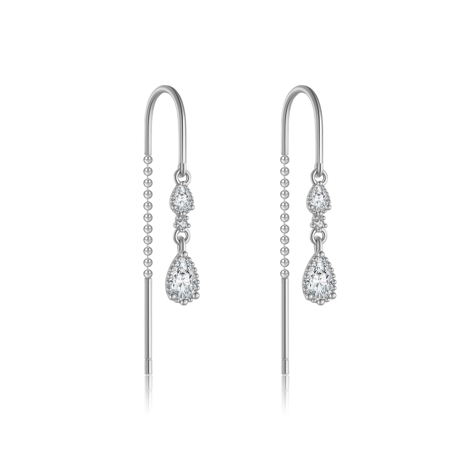 925 Sterling Silver Crystal Teardrop Threader Earrings 50500012