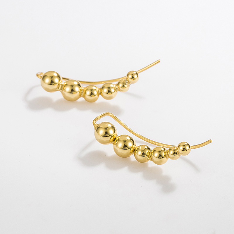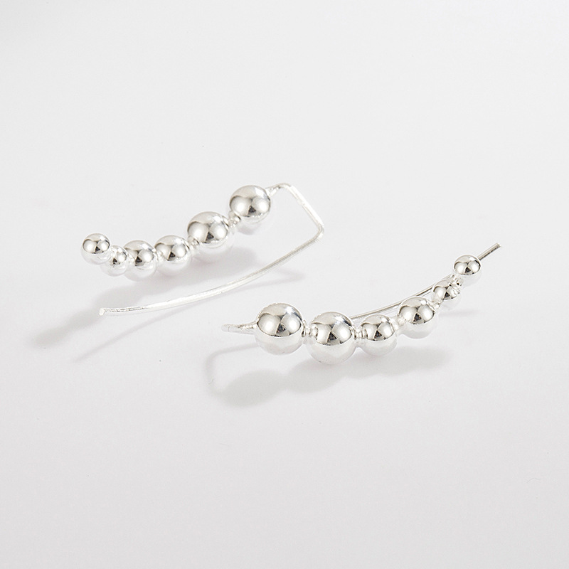 Capture the trend for "Ear Crawlers" and geometric minimalism with our Wholesale 925 Sterling Silver Curved Graduated Ball Stud Earrings. This design features a series of smooth, high-polish beads arranged in an arc to contour the ear. The "Graduated" sizing adds visual interest and sophistication. As a minimalist "Daily Wear" essential, this SKU appeals to a broad demographic. Manufactured from solid S925 sterling silver, it offers the look of high-end gold jewelry at a competitive wholesale price point.