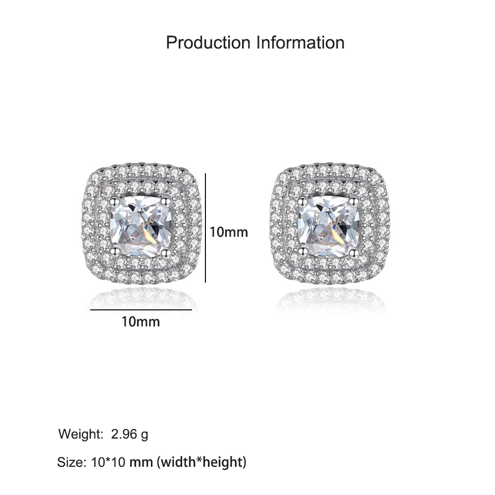 925 Sterling Silver Cushion-Cut Halo Zircon Stud Earring 40200703 - image1925 Sterling Silver Cushion-Cut Halo Zircon Stud Earring 40200703 - image2