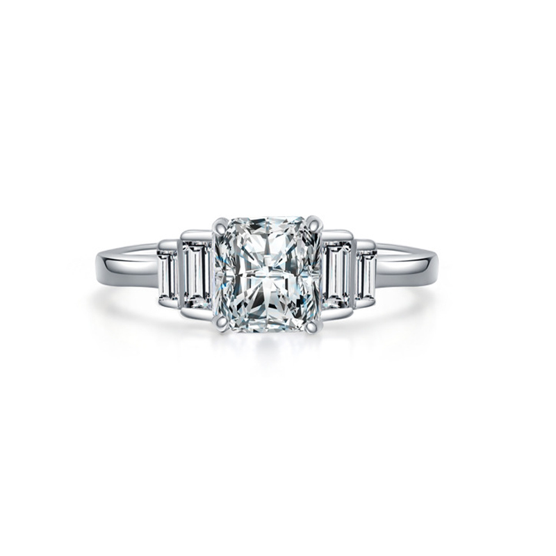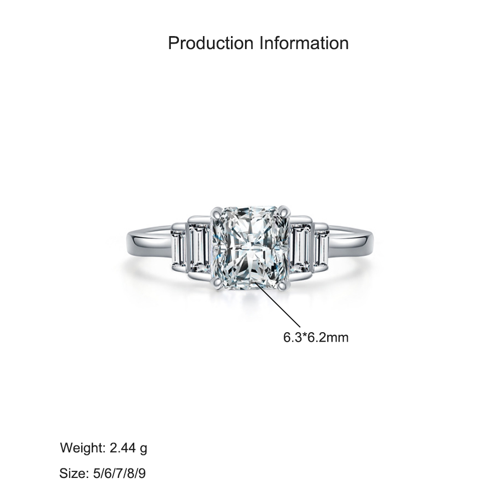 This exquisite 925 sterling silver ring highlights a radiant cushion-cut cubic zirconia centerpiece, framed by baguette-cut side stones for a refined and luxurious sparkle. The combination of modern geometry and timeless brilliance makes it an elegant choice for engagements, anniversaries, or daily sophistication. Rhodium-plated for superior shine and tarnish resistance, this ring delivers the perfect balance of classic elegance and contemporary charm.