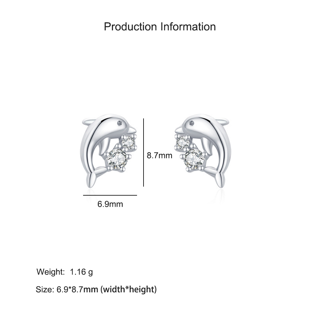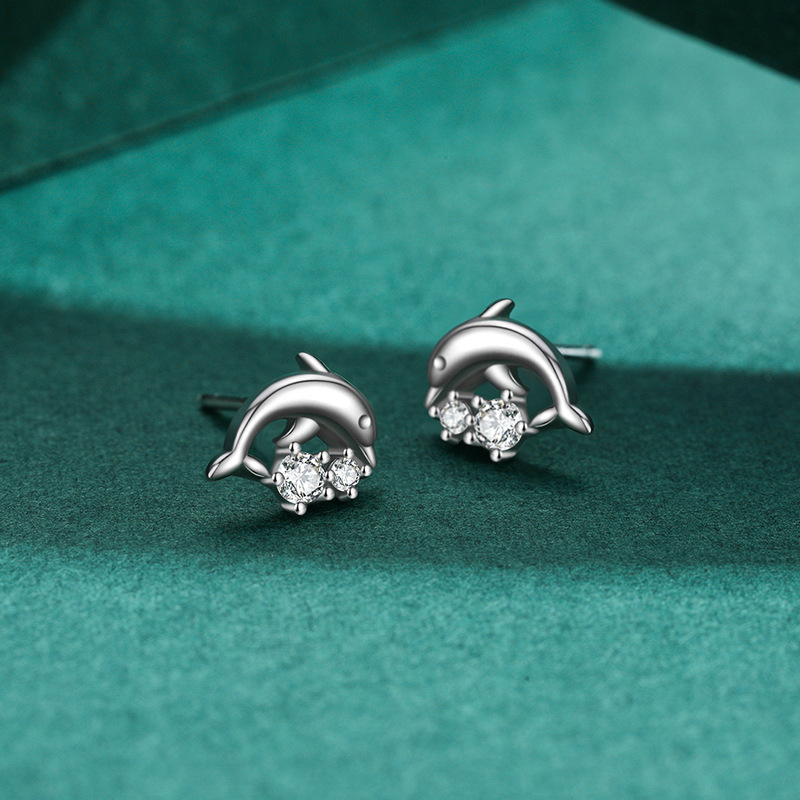 These wholesale 925 sterling silver dolphin earrings feature a sleek marine-inspired design with bright zircon accents. Perfect for boutiques and jewelry retailers, they blend playful charm with refined craftsmanship. Made from premium sterling silver, they are hypoallergenic, durable, and ideal for animal-themed or ocean-inspired jewelry collections.