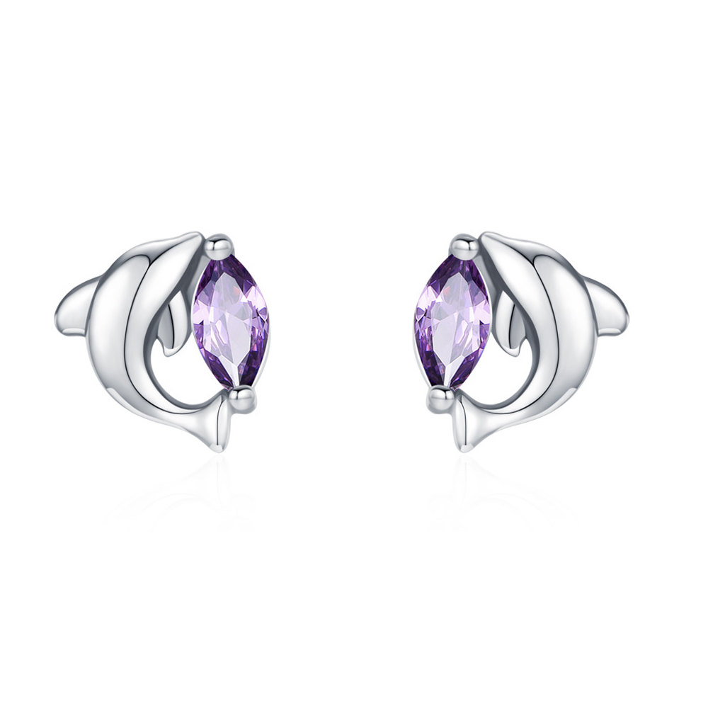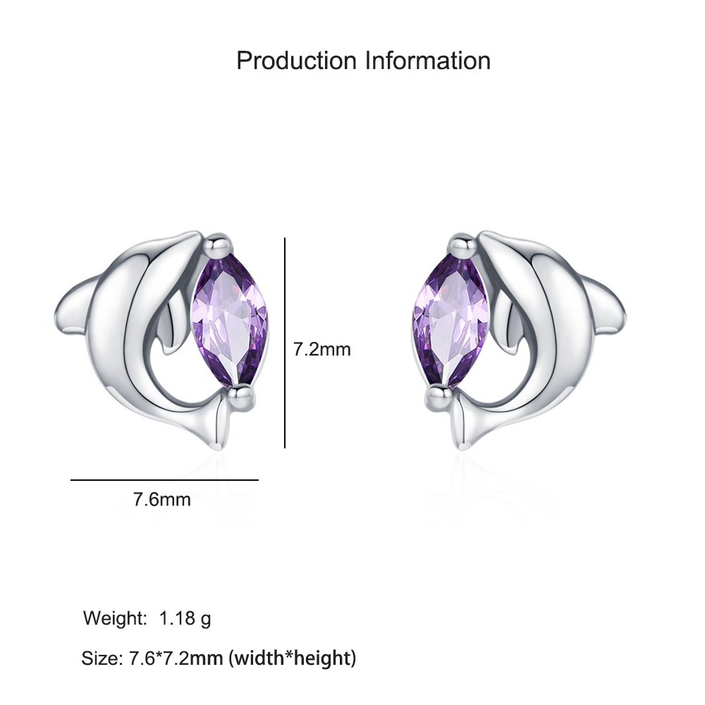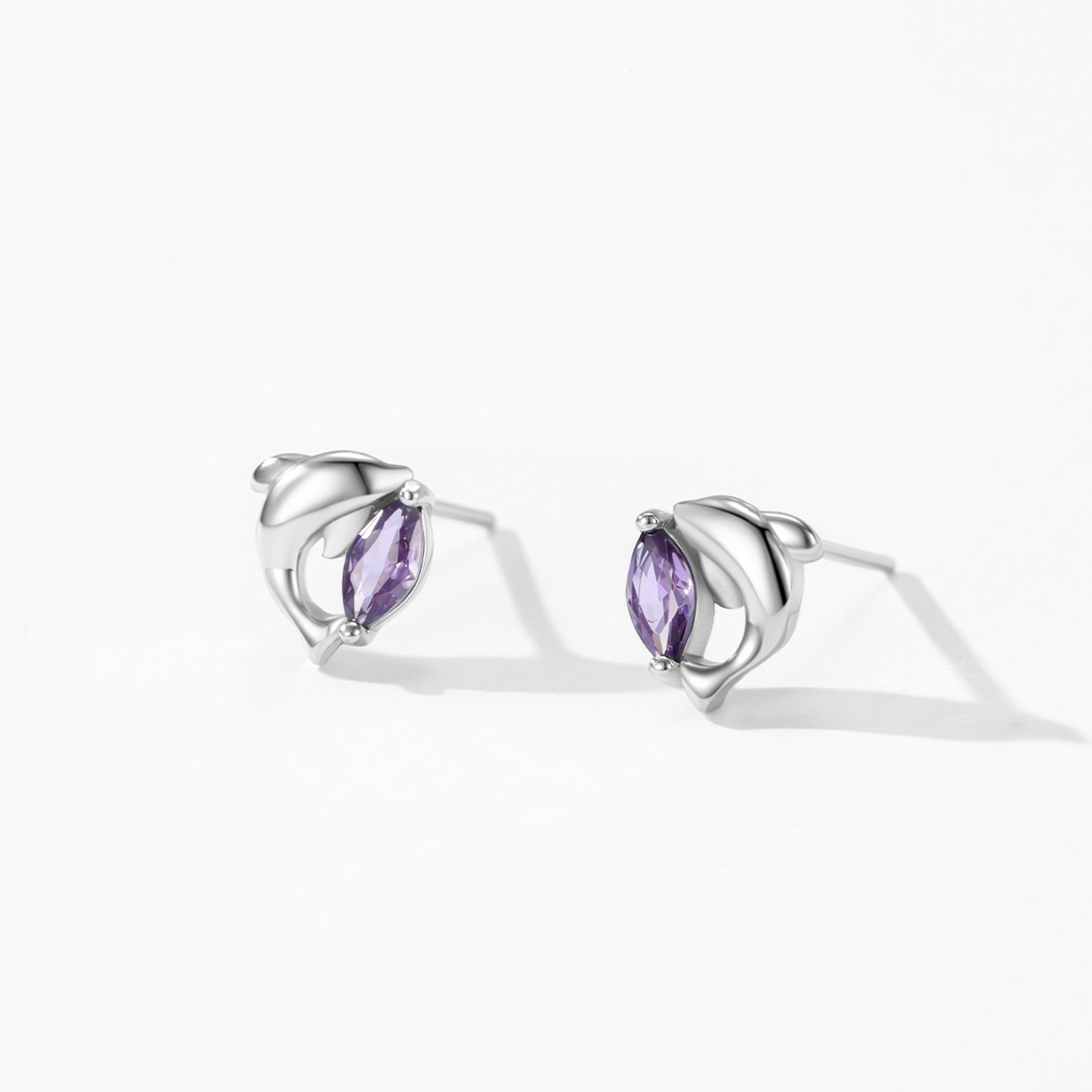 Add a splash of charm to your look with these 925 sterling silver dolphin earrings, featuring a marquise-cut purple zircon that glimmers with every movement. The playful dolphin design symbolizes harmony and joy, making these earrings a perfect blend of elegance and whimsy. Crafted from hypoallergenic sterling silver, they’re lightweight, comfortable, and ideal for daily wear or gifting to ocean lovers.