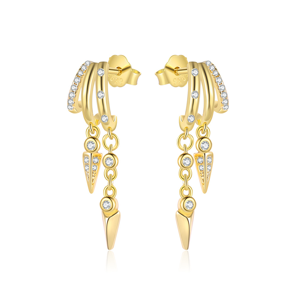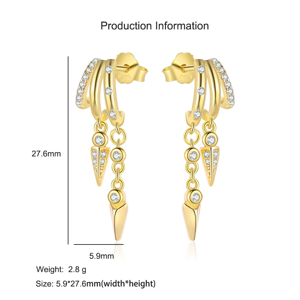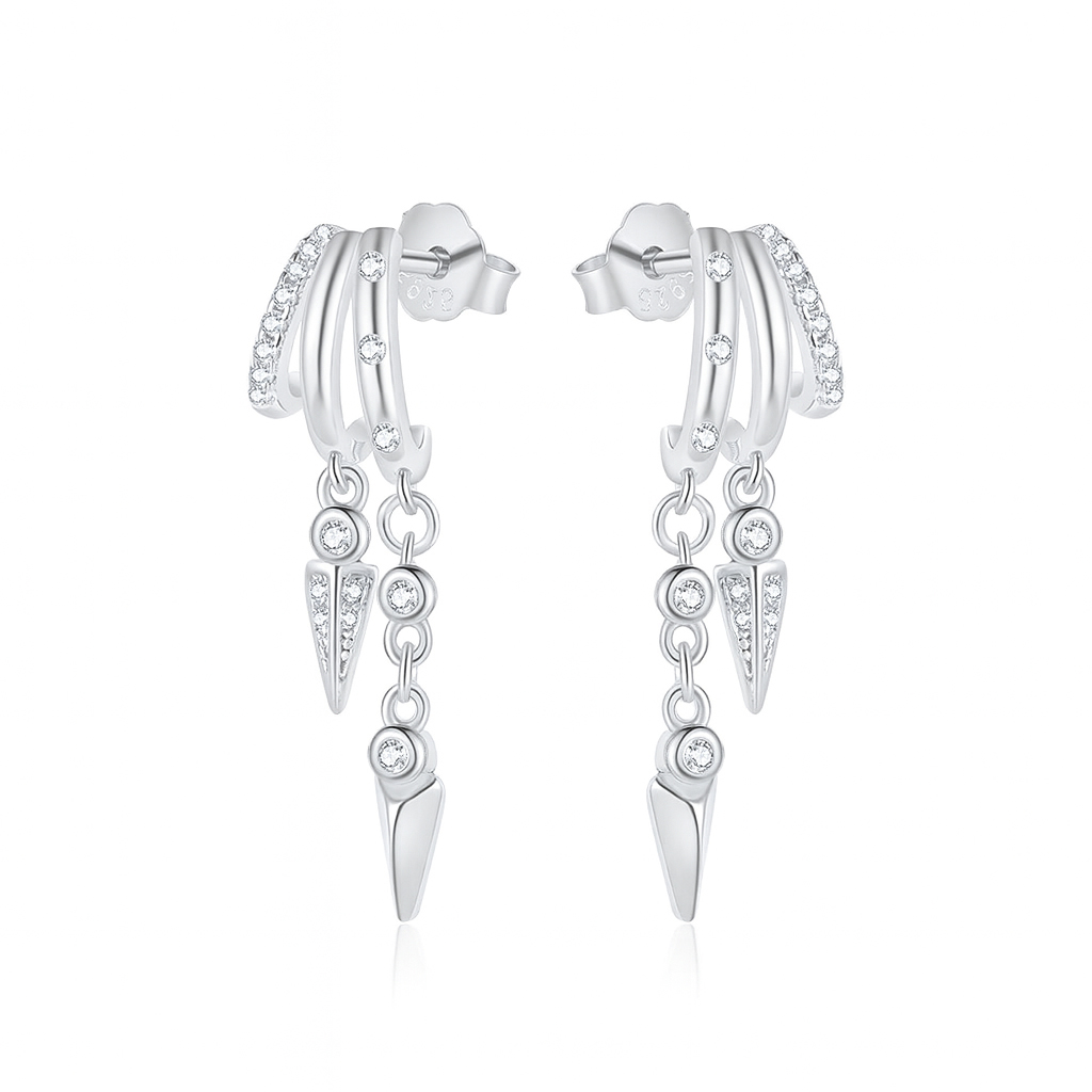 925 Sterling Silver Double-Layer Pave CZ Rivet Tassel Stud Earring 40200631