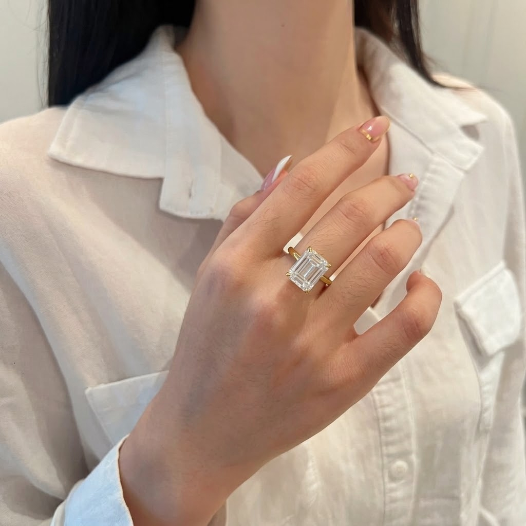 Command premium price points in your bridal and luxury categories with our Wholesale 925 Silver Emerald-Cut Solitaire Ring. The emerald cut is synonymous with high-end sophistication and the massive "quiet luxury" trend. This spectacular SKU features a flawless, large-carat rectangular 5A zircon set in a classic four-prong mount on a radiant gold-finished band. Crafted from hypoallergenic S925 silver, it delivers incredible, fine-jewelry-level perceived value and substantial presence. A mandatory, high-margin anchor for your "Bridal Alternatives" and "Statement Rings" assortments.