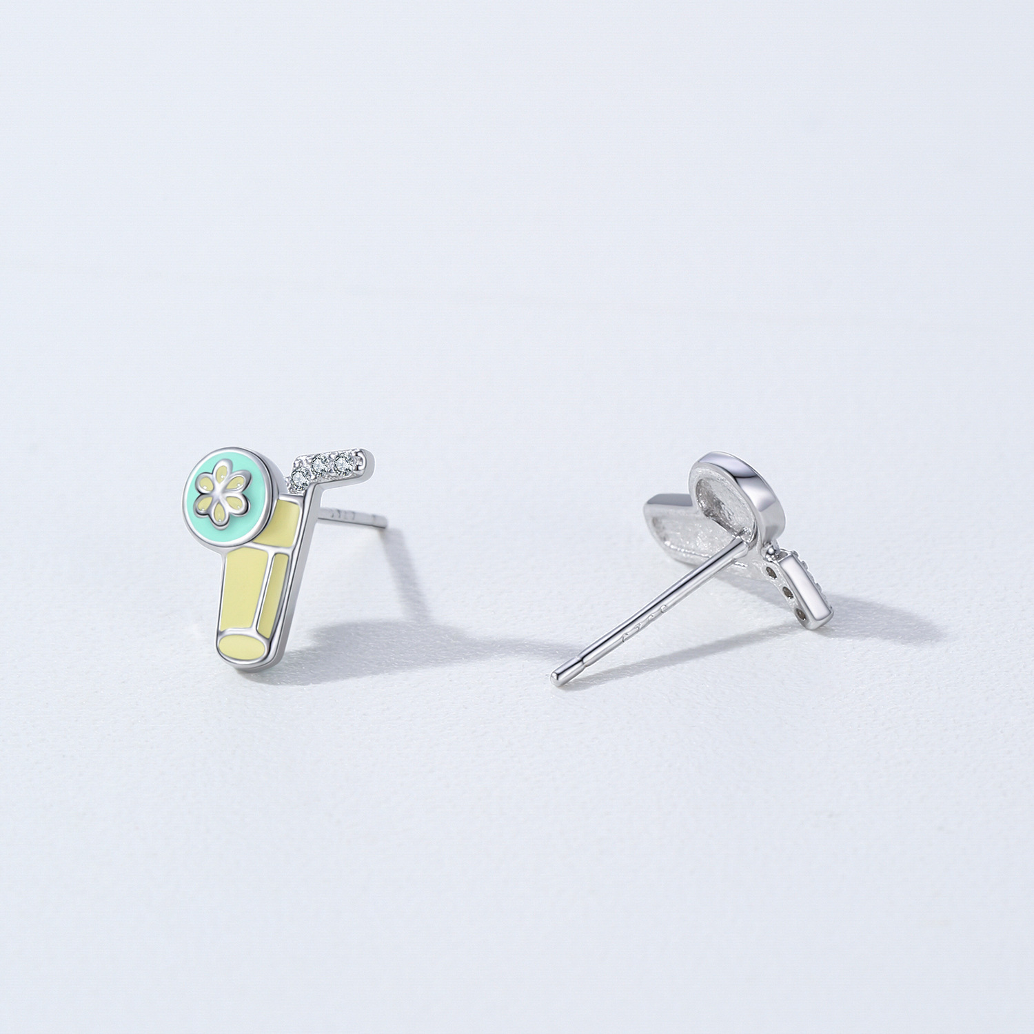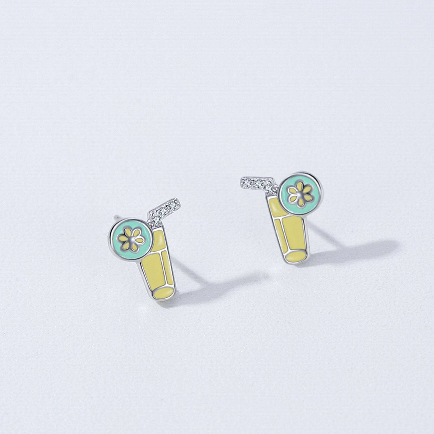 These wholesale 925 sterling silver lemon soda earrings bring a burst of color and fun to your jewelry collection. Featuring charming enamel details in yellow and mint green with a sparkling zircon straw accent, they’re ideal for trendy seasonal collections. Made from hypoallergenic sterling silver with fine enamel craftsmanship, these earrings are perfect for boutiques and online stores targeting youthful, playful fashion lovers.