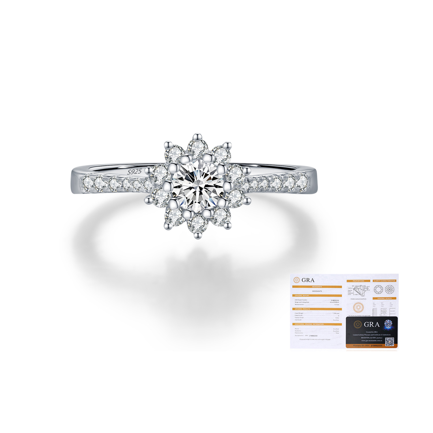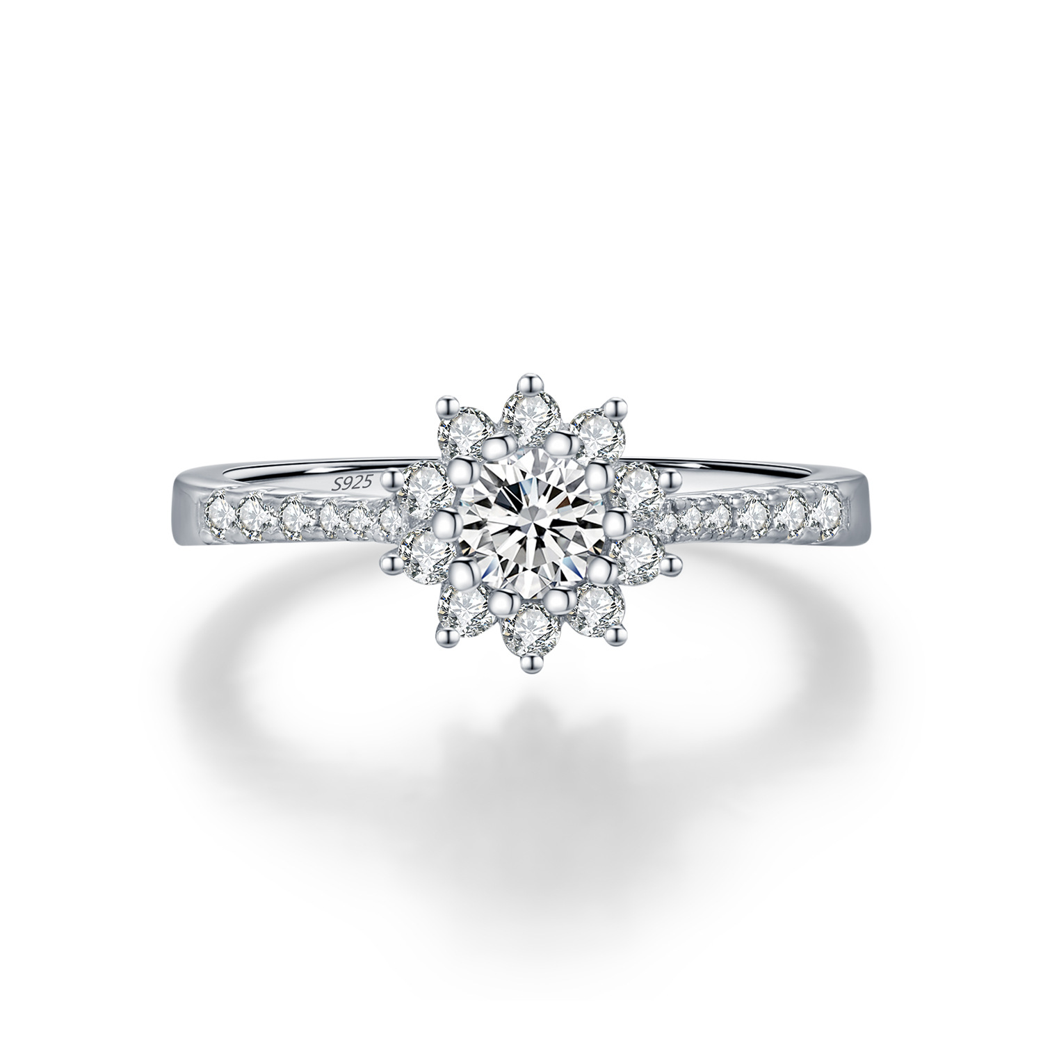 925 Sterling Silver Flower Halo Pave Moissanite Ring 110200056