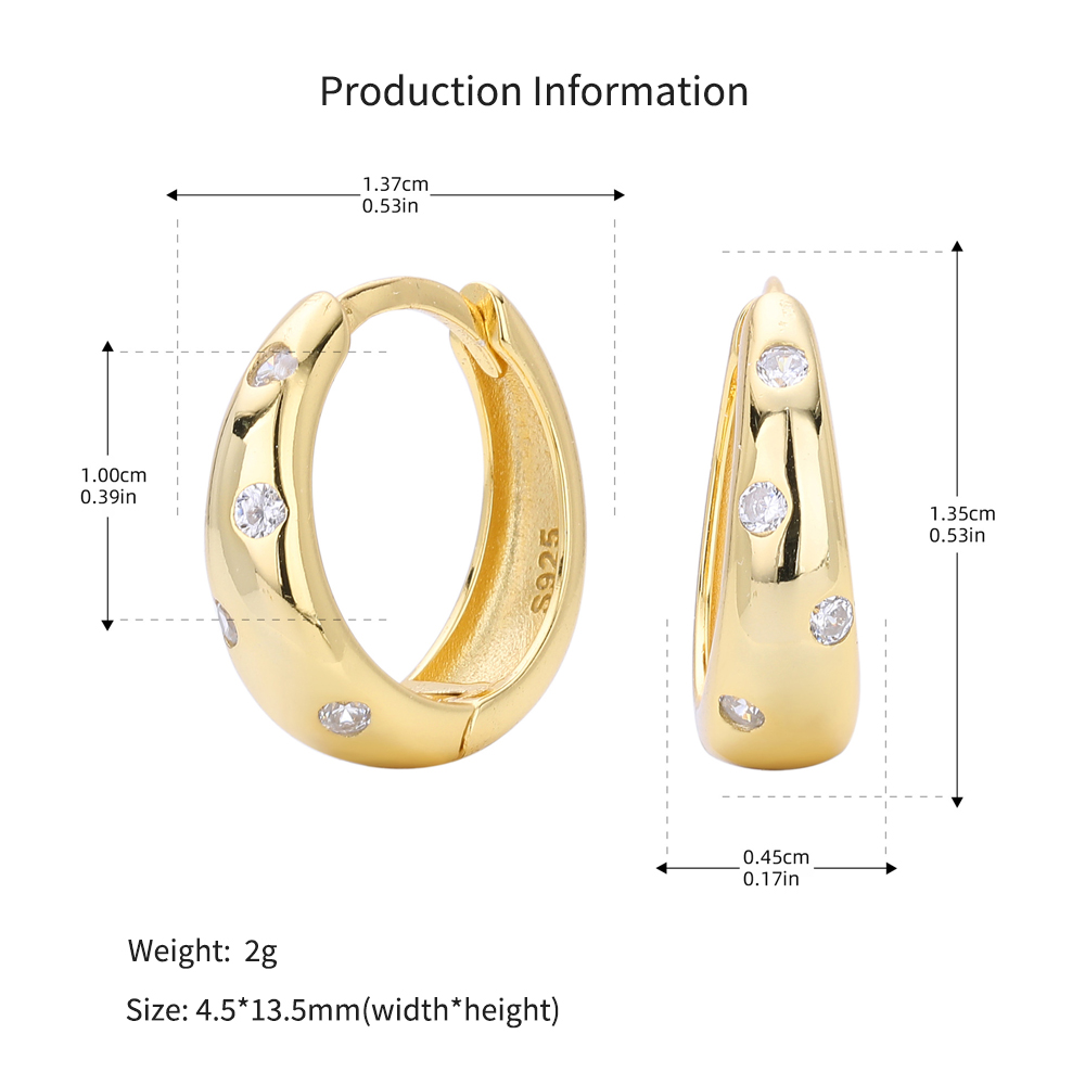 Update your minimalist category with our Wholesale 925 Sterling Silver Flush Set Tapered Hoops. The "Flush" or "Gypsy" setting is a key trend in current jewelry design, favored for its clean lines and durability (no prongs to catch on clothing). This SKU features a "Tapered" or bottom-heavy hoop shape that offers a substantial look without excessive weight. The scattered placement of the Cubic Zirconia adds a unique design element that differentiates these from standard huggies. Manufactured from solid S925 sterling silver, they are a high-quality staple for "Quiet Luxury" collections.
