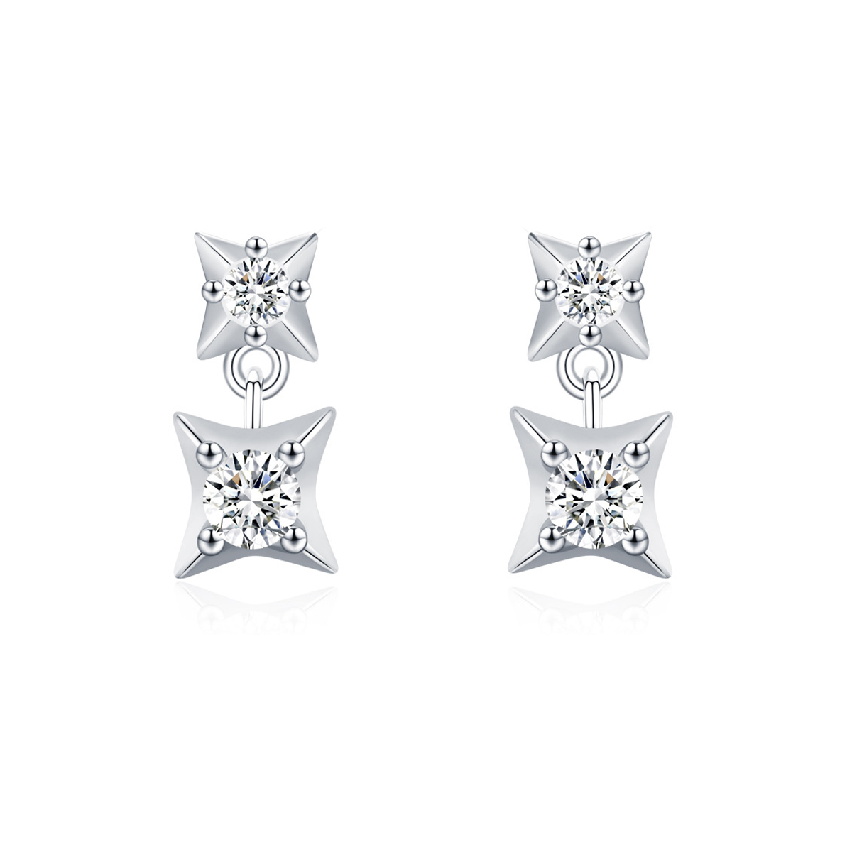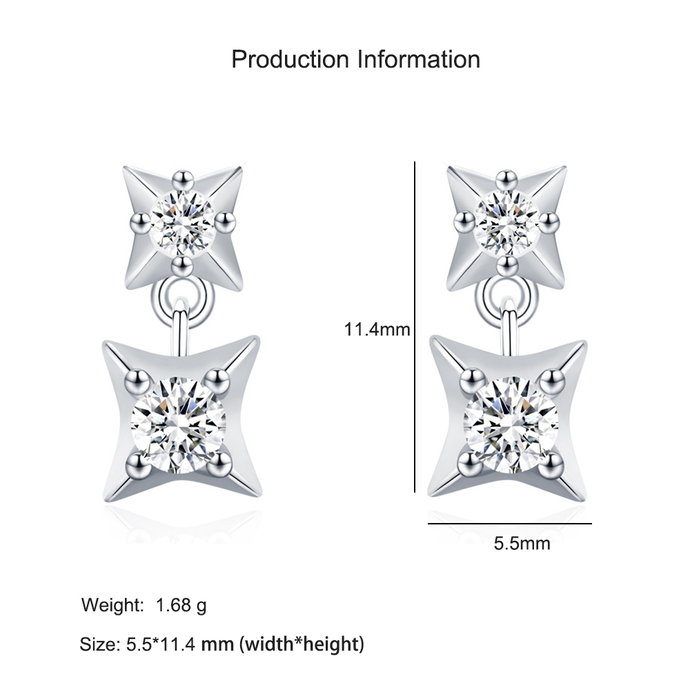 925 Sterling Silver Four-Point Star Zircon Stud Earring 40200714