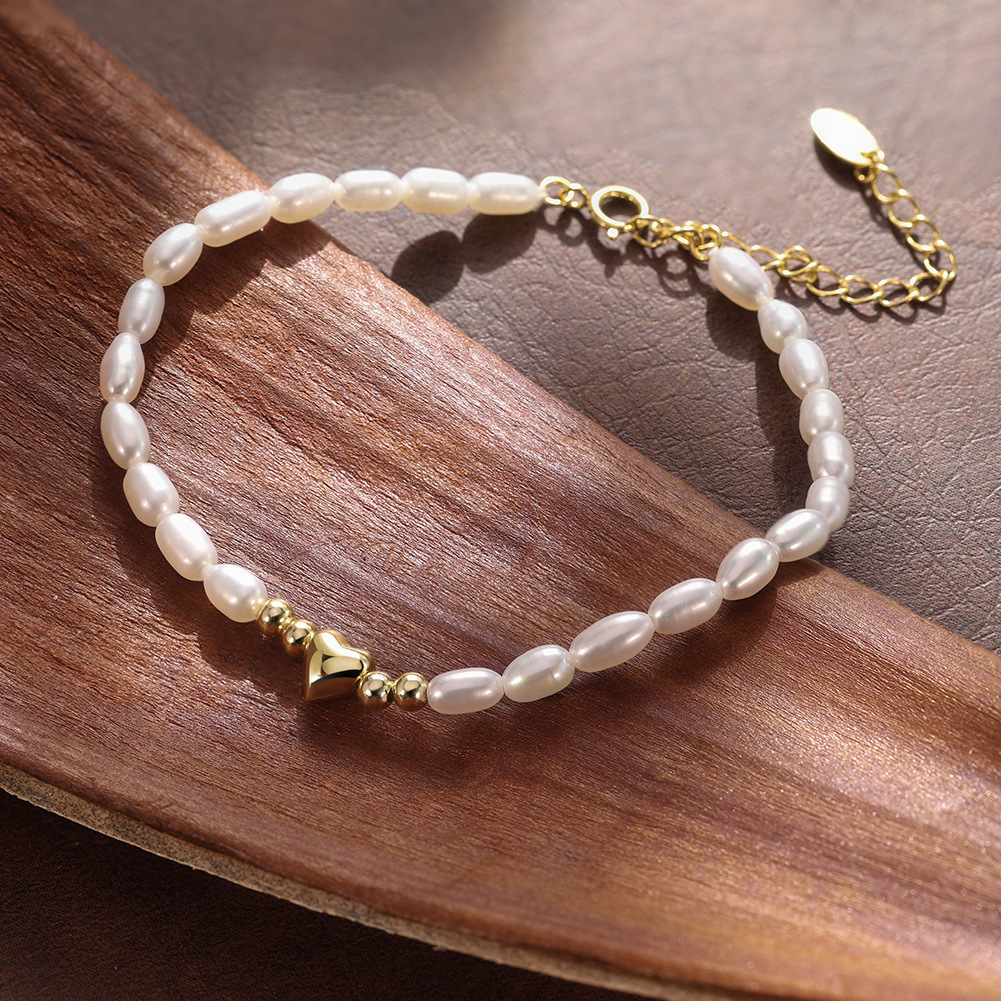 Secure a guaranteed high-turnover item for your romantic and gifting assortments with our Wholesale 925 Sterling Silver Freshwater Pearl Heart Bracelet. Heart motifs are a historically proven, top-performing retail category year-round, especially for Valentine's Day, Mother's Day, and bridal gifting. This SKU offers a fresh, modern take on the classic pearl strand by utilizing highly requested elongated (rice) freshwater pearls anchored by a premium metallic heart focal point. The dainty silhouette perfectly captures the lucrative "everyday minimalism" trend. Furthermore, the included S925-stamped adjustable extender chain completely eliminates rigid sizing risks, ensuring a perfect fit for a wider demographic and drastically reducing your return rates. Available in essential silver and yellow-gold platings, this high-margin item is an absolute necessity for your "Meaningful Gifts," "Everyday Fine Jewelry," and "Romantic Pearl" collections.
