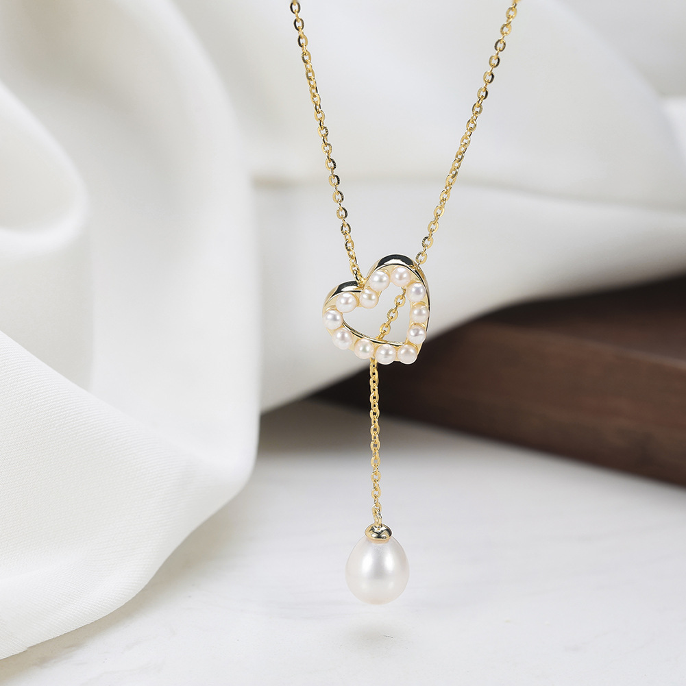 Secure a guaranteed bestseller for your romantic gifting and bridal assortments with our Wholesale 925 Sterling Silver Pearl Heart Lariat Drop Necklace. The "Y-necklace" or lariat silhouette is a consistently high-performing retail category because its linear drop beautifully flatters and elongates the wearer's neckline, providing excellent multi-garment versatility. This SKU elevates the traditional heart pendant by lining the open silhouette with highly demanded delicate pearls and anchoring the drop with a larger, premium freshwater pearl. This seamless combination of romantic symbolism and modern design creates a high-end designer aesthetic that supports excellent retail markups. Available in essential silver and yellow-gold platings, this elegant piece is a mandatory anchor for your "Valentine's Day Gifting," "Bridal Elegance," and "Romantic Pearl" collections.